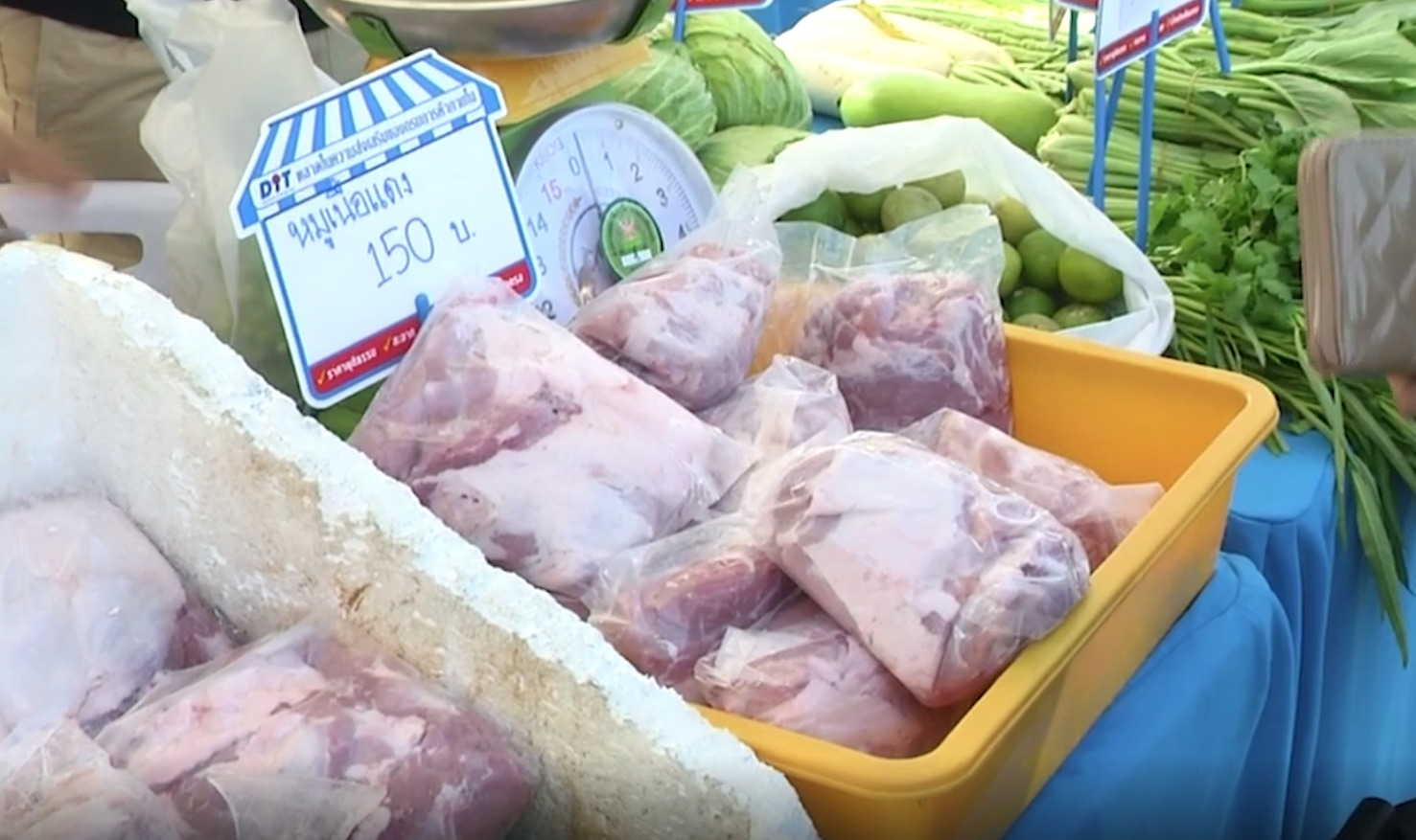 สำหรับรายการสินค้าที่นำมาจำหน่ายในจุดจำหน่าย นอกจากหมูเนื้อแดงราคากิโลกรัมละ 150 ยังมีสินค้าอื่นๆ เช่น ไข่ไก่เบอร์ 2 ราคาทั่วไปแผงละ 110 บาท เหลือ แผงละ 80 บาท น้ำมันพืช ขวดละ 48 บาท น้ำตาลทรายกิโลกรัมละ 18 บาท
