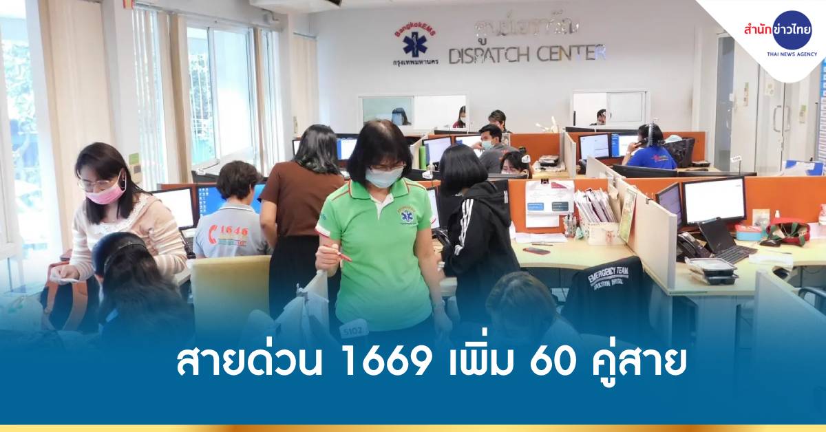 กทม. 11 ม.ค.-ศูนย์เอราวัณ กทม. เพิ่มคู่สายด่วน 1669 เป็น 60 คู่สาย รองรับสายตลอด 24 ชั่วโมง ตั้งเป้าส่งต่อผู้ป่วยเข้ารักษาภายใน 1 วัน ไม่ให้ตกค้าง