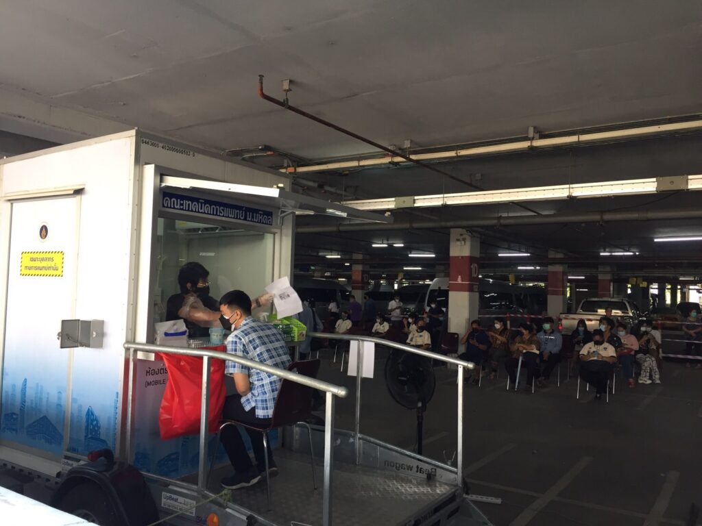 วันแรกของการให้บริการตรวจคัดกรองโควิด-19 เชิงรุก ด้วยชุดตรวจ ATK บริเวณลานจอดรถชั้น 1 อาคารบี ศูนย์ราชการเฉลิมพระเกียรติ แจ้งวัฒนะ กรุงเทพฯ มีประชาชนมารอคิวเข้ารับการตรวจหาเชื้อตั้งช่วงเช้า ซึ่งจุดนี้สำนักงานหลักประกันสุขภาพ หรือ สปสช.ร่วมกับ คณะเทคนิคการแพทย์ มหาวิทยาลัยมหิดลให้บริการประชาชนตรวจคัดหาเชื้อโควิด-19 ฟรี ไม่ต้องลงมะเบียนล่วงหน้า เปิดบริการ 08.00-15.00น. ตั้งแต่วันนี้ ถึง 21 ม.ค.65