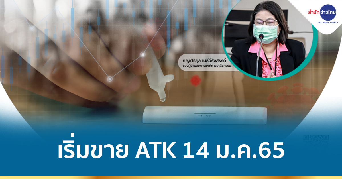 กทม. 11 ม.ค.- องค์การเภสัชกรรม จำหน่ายชุดตรวจ ATK โครงการ “ATK คุณภาพ เพื่อสังคมไทย” ราคา 35 บาทต่อชุด เริ่มจำหน่ายวันที่ 14 ม.ค.65