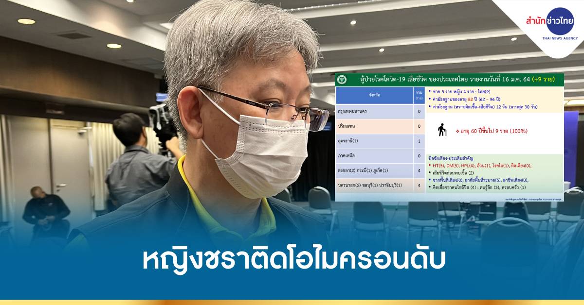 สำนักข่าวไทย 16 ม.ค.-อธิบดีกรมควบคุมโรค แจงวันนี้จำนวนผู้เสียชีวิตลดเหลือ 9 คน เกิดขึ้นเพราะ 2 ปัจจัย วัคซีนและความรุนแรงของเชื้อลดลง แต่ยังประมาทไม่ได้ ยกอุทาหรณ์ หญิงชราอัลไซเมอร์ติดโอไมครอน ฉีดไฟเซอร์ครบ 2 เข็ม แต่ติดจากญาติที่มาเยี่ยมช่วงปีใหม่ จึงขอย้ำกลุ่มเสี่ยง 608 มารับวัคซีนเข็มกระตุ้น