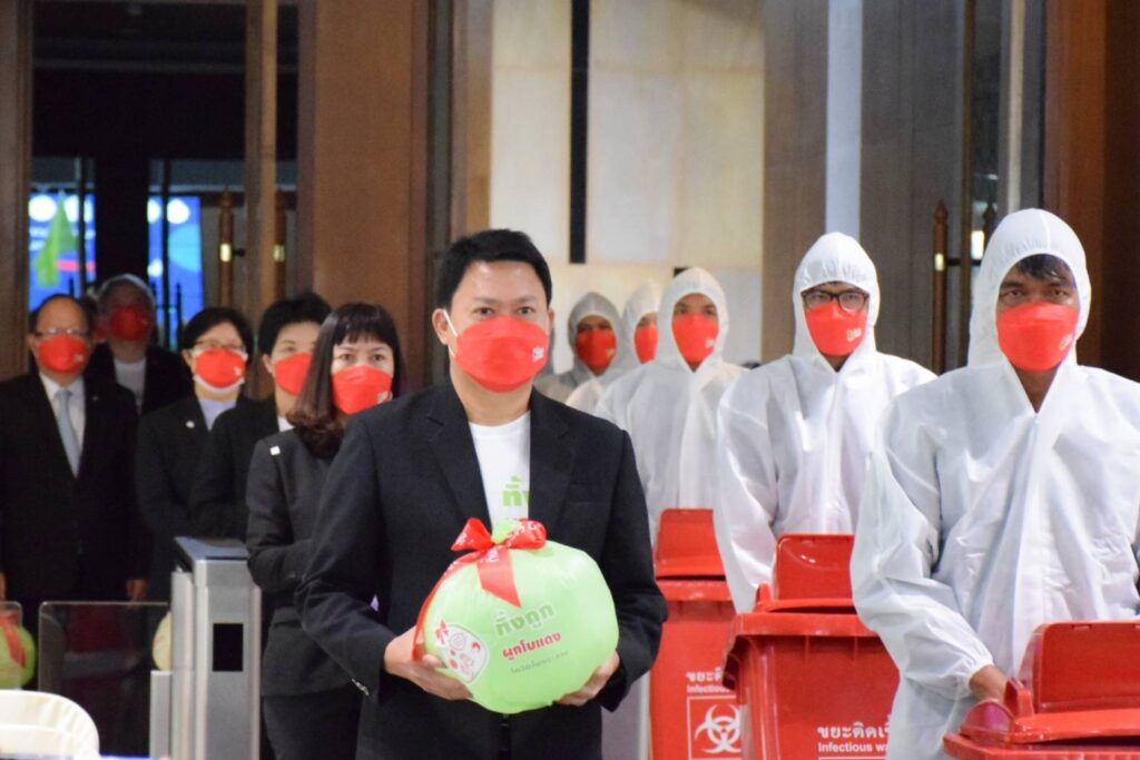 ผู้อำนวยการสำนักสิ่งแวดล้อม กล่าวว่า จากสถานการณ์การแพร่ระบาดของโรคติดเชื้อไวรัสโคโรนา 2019 ในปัจจุบัน ทำให้มีขยะติดเชื้อจากโควิด-19 เพิ่มมากขึ้น กรุงเทพมหานครตระหนักถึงปัญหาการแพร่ระบาดดังกล่าว จึงได้จัดให้มีระบบเก็บรวบรวมขยะติดเชื้อจากโรงพยาบาลและสถานพยาบาล ศูนย์บริการสาธารณสุข โรงพยาบาลสนาม Hospitel ศูนย์พักคอย และจากผู้รักษาตัวที่บ้าน หรือ Home isolation รวมถึงระบบรวบรวมขยะที่เสี่ยงต่อการแพร่เชื้อ อาทิ หน้ากากอนามัยและชุดตรวจหาเชื้อโควิด-19 และนำไปกำจัดโดยการเผาที่อุณหภูมิสูง 1,200 องศาเซลเซียส เพื่อให้มีการเผาไหม้ที่สมบูรณ์ ไม่ส่งผลกระทบต่อสิ่งแวดล้อม ซึ่งความร่วมมือในการดำเนินโครงการจัดการขยะติดเชื้อ “ทิ้งถูก ผูกโบแดง โควิดไม่กระจาย” เกิดจากความร่วมมือระหว่างกรุงเทพมหานครโดยสำนักสิ่งแวดล้อม และ 14 องค์กรเครือข่าย เป็นการเริ่มต้นที่ดีที่ทุกหน่วยงานจะได้เข้ามามีส่วนร่วมในการรณรงค์ให้ประชาชนคัดแยกขยะ ซึ่งจะก่อให้เกิดการปรับเปลี่ยนพฤติกรรมการคัดแยกขยะติดเชื้อ เพื่อกรุงเทพมหานครจะได้นำไปกำจัดให้ถูกวิธีแยกจากขยะประเภทอื่นๆ ได้อย่างมีประสิทธิภาพต่อไป