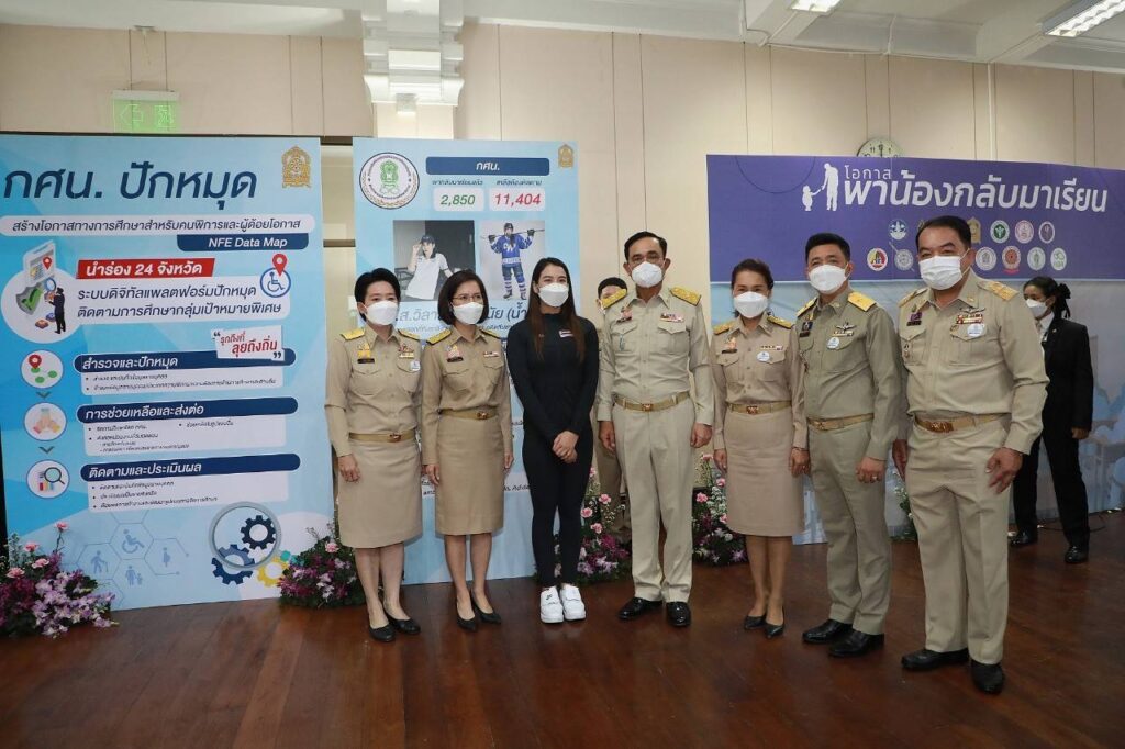 “กระทรวงศึกษาธิการ โดยรัฐมนตรีทั้งสามท่าน เล็งเห็นถึงปัญหานักเรียนที่หลุดออกจากระบบการศึกษา โดยในปี 2564 มีจำนวนนักเรียนหลุดจากระบบมากถึง 238,707 คน ในจำนวนนี้อยู่ในสังกัด สป. จำนวน 50,592 คน และเป็นข้อมูลผู้พิการที่ไม่ได้รับการศึกษาจากกระทรวงการพัฒนาสังคมและความมั่นคงของมนุษย์ (พม.) จำนวน 54,513 คน ศธ. โดย กศน. ได้ตรวจสอบข้อมูลและปักหมุดด้วยระบบดิจิทัลแพลตฟอร์ม “ปักหมุด ติดตามการศึกษากลุ่มเป้าหมายพิเศษ” จำนวน 14,187 คน เพื่อจัดการศึกษาให้เหมาะสมกับความพิการ ตลอดจนจัดการเรียนรู้ส่งเสริมอาชีพให้ครอบครัวผู้พิการ ได้มีรายได้มีความเป็นอยู่ที่ดีขึ้น พร้อมทั้งประสานภาคีเครือข่าย เข้ามาดูแลให้ความช่วยเหลือแบบยั่งยืน