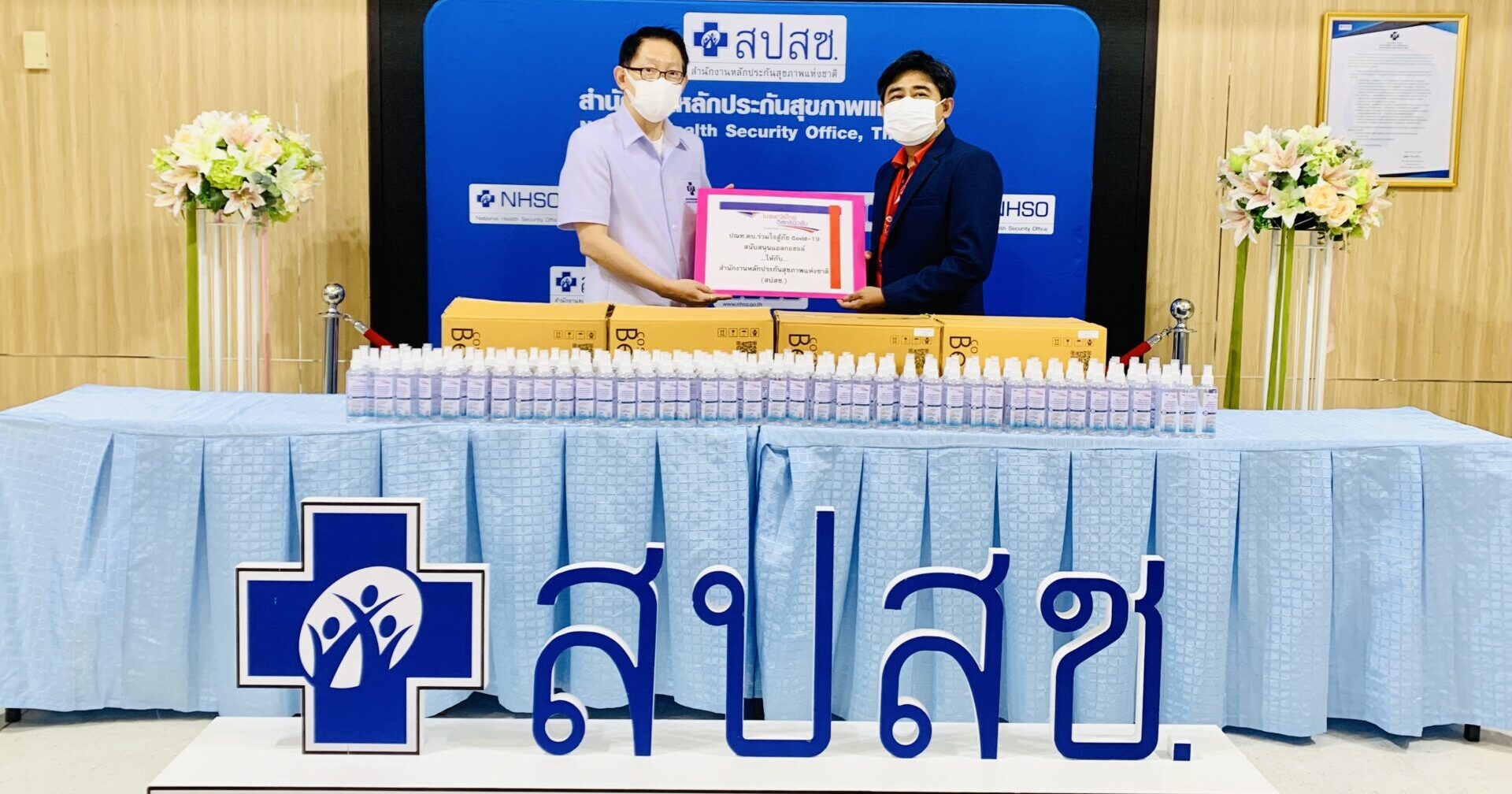 นพ.จเด็จ ธรรมธัชอารี เลขาธิการสปสช.รับมอบแอลกอฮอล์จากนายพีระ อุดมกิจสกุล กรรมการผู้จัดการบริษัท ไปรษณีย์ไทยดิสทริบิวชั่น จำกัด เพื่อจัดส่งถึงบ้านผู้ป่วยโรคไตวายเรื้อรังโครงการหลักประกันสุขภาพถ้วนหน้าหรือผู้ป่วยสิทธิบัตรทองทั่วประเทศ ซึ่งร่วมในโครงการจัดส่งน้ำยาล้างไตของบริษัท ไปรณีย์ไทยดิสทริบิวชั่น จำนวนกว่า 3 หมื่นราย