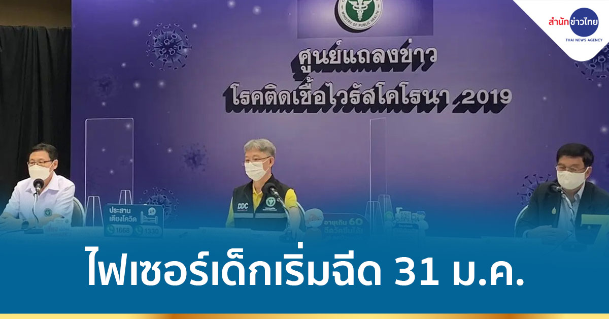 นายแพทย์โอภาส การย์กวินพงษ์ อธิบดีกรมควบคุมโรค เปิดเผยถึง แนวทางการกระจายวัคซีนไฟเซอร์สำหรับเด็กอายุ 5-11 ปี ว่าวันนี้(26ม.ค.)ไทยได้รับวัคซีนดังกล่าวมาแล้ว 3 แสนโดส โดยวัคซีนไฟเซอร์สูตรสำหรับเด็กฝาสีส้ม ขณะนี้เป็นวัคซีนชนิดเดียวที่ได้รับการขึ้นทะเบียนจาก อย. จะฉีดในเด็กกลุ่มอายุ 5- 11 ปี ตามขนาดและข้อมูลใช้ที่กระทรวงสาธารณสุขและราชวิทยาลัยกุมารแพทย์แห่งประเทศไทยแนะนำ