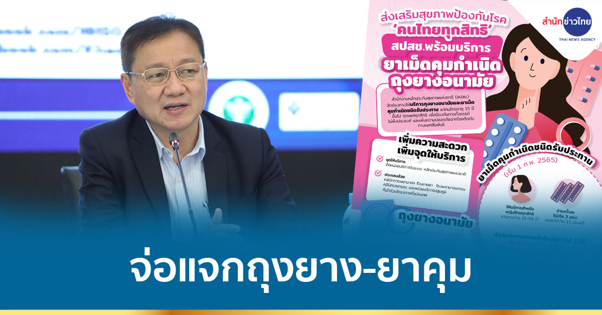 สธ. 27 ม.ค.- สปสช.จัดช่องทางให้บริการถุงยางอนามัยและยาเม็ดคุมกำเนิด แก่คนไทยอายุ 15 ปีขึ้นไปทุกเพศทุกสิทธิ โดยให้บริการยาคุมครั้งละ 1-3 แผง ปีละไม่เกิน 13 แผง ดีเดย์ 1 ก.พ. 2565 ส่วนถุงยางอนามัยมี 4 ไซส์ให้เลือก รับบริการได้ครั้งละ 10 ชิ้น/ สัปดาห์ รอบการจ่าย 7 วัน รับได้ 1 ครั้ง ไม่จำกัดจำนวนถุงยาง/คน/ปี คาดเริ่มได้ เมษายน 2565