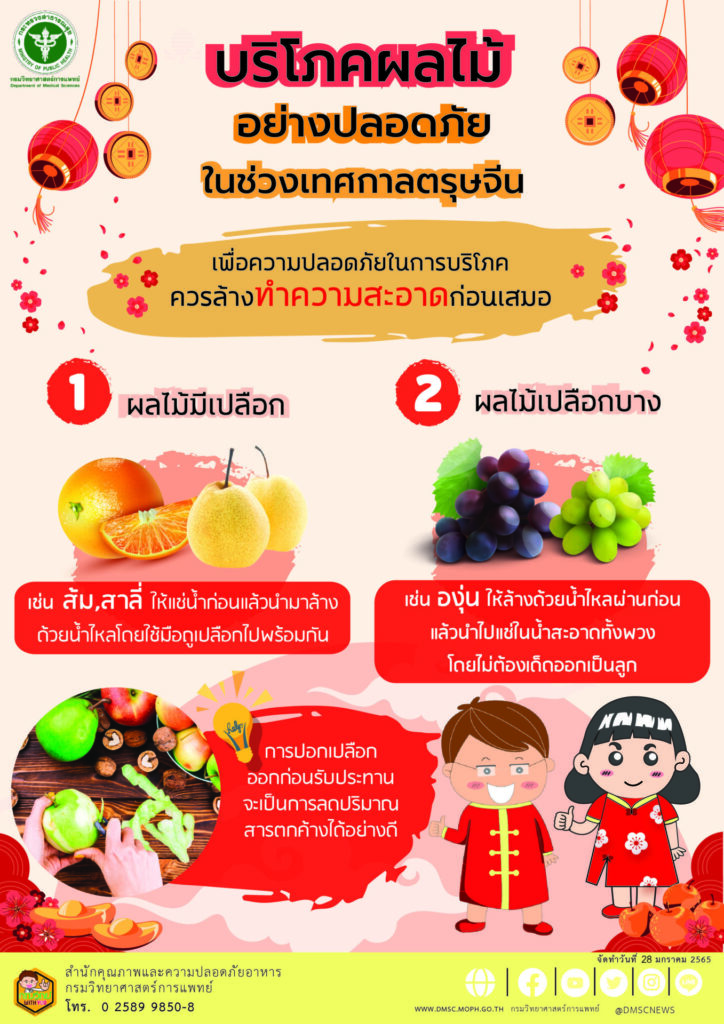 29 ม.ค. – กรมวิทย์ฯ เฝ้าระวังอันตรายจากสารตกค้างที่มากับ “ผลไม้มงคล” แนะล้างทำความสะอาดก่อนบริโภค