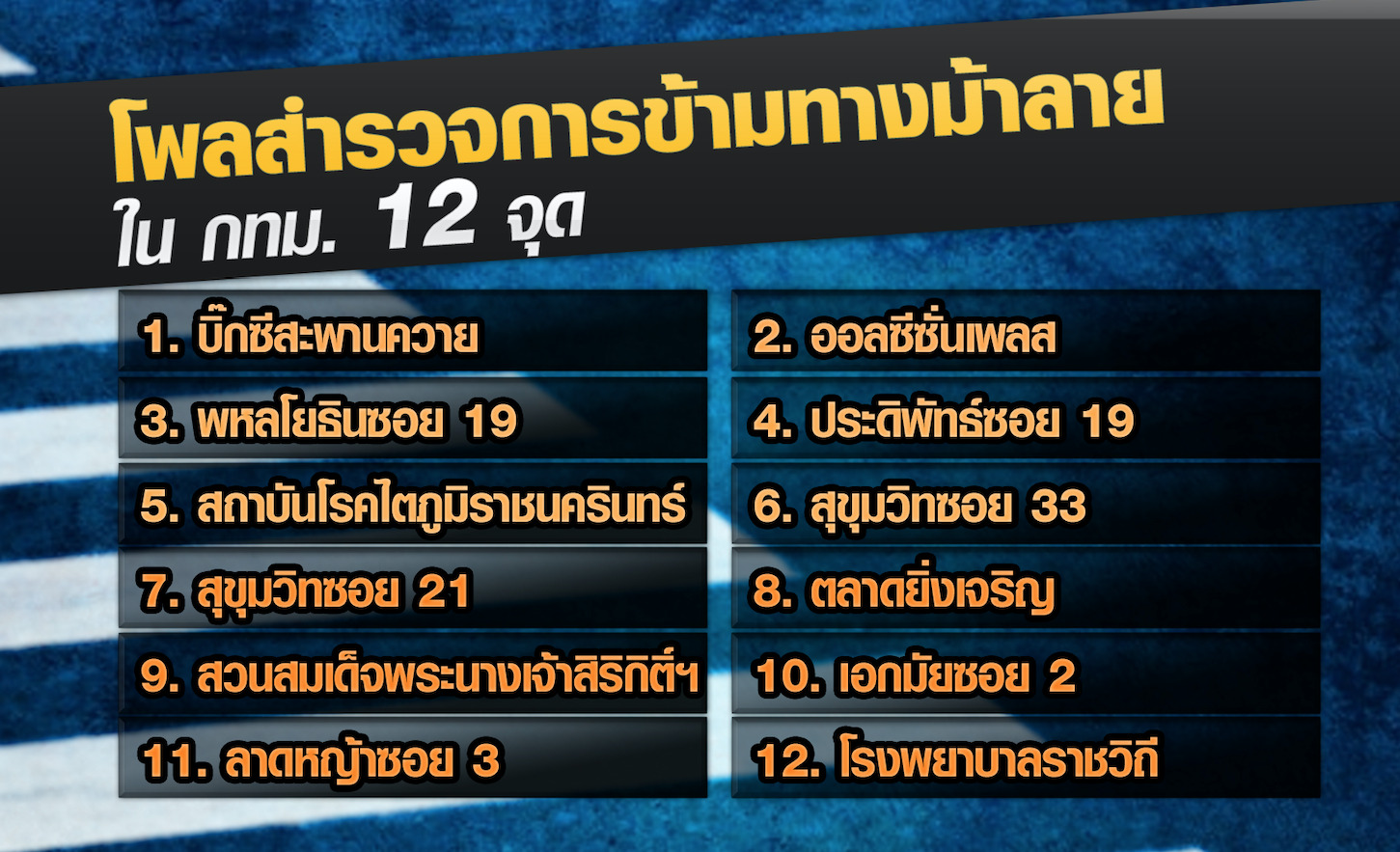 นางสาวรุ่งอรุณ ลิ้มฬหะภัณ ผู้อำนวยการสำนักสนับสนุนการควบคุมปัจจัยเสี่ยงทางสังคม สำนักงานกองทุนสนับสนุนการสร้างเสริมสุขภาพ (สสส.) กล่าวว่า จากกรณี พญ.วราลัคน์ สุภวัตรจริยากุล หรือ หมอกระต่ายถูกบิ๊กไบก์ชนขณะเดินข้ามทางม้าลายจนเสียชีวิต สสส. จึงร่วมกับ มูลนิธิไทยโรดส์ (ThaiRoads Foundation) สำรวจพฤติกรรมการหยุดรถบริเวณทางข้ามม้าลายในเขตกรุงเทพมหานครจำนวน 12 จุด ได้แก่