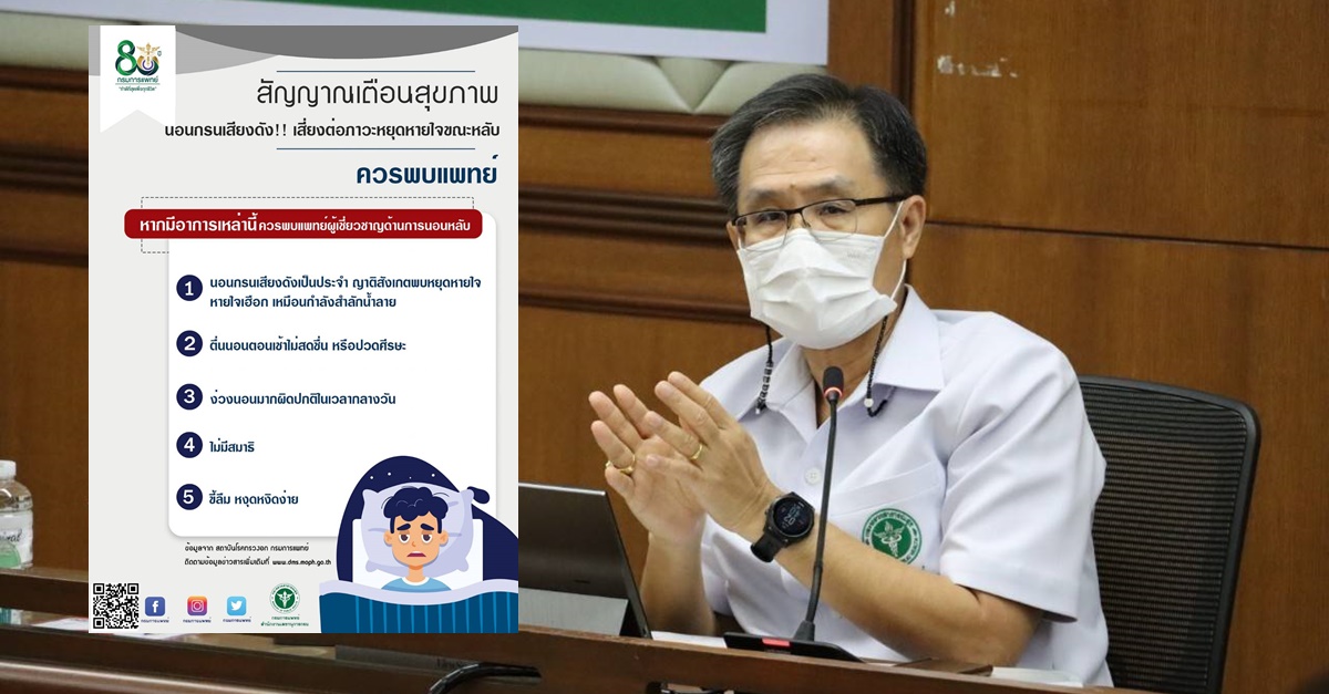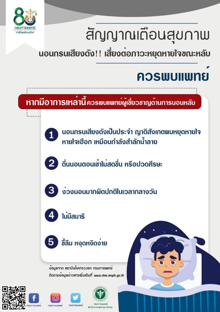 สถาบันโรคทรวงอก 7 ก.พ.- กรมการแพทย์ โดยสถาบันโรคทรวงอก เตือนนอนกรนเสียงดังเป็นประจำ ง่วงนอนมากผิดปกติ ในเวลากลางวัน อย่าละเลย อาจเสี่ยงต่อการเกิดภาวะหยุดหายใจขณะนอนหลับโดยไม่รู้ตัว
