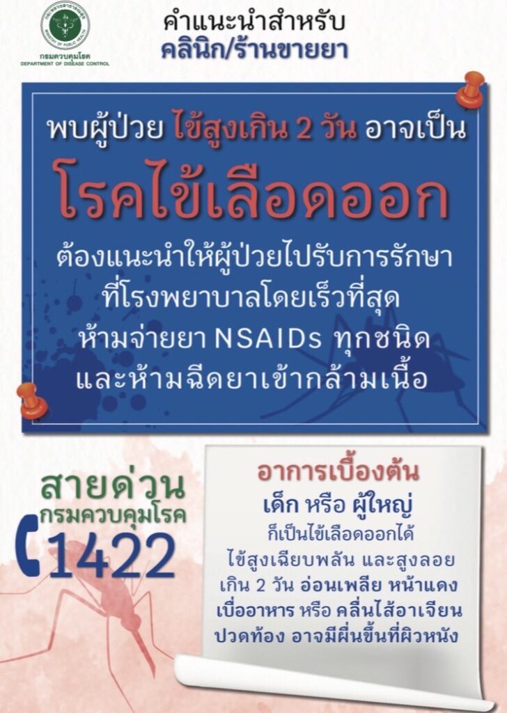 สธ. 8 ก.พ.- กรมควบคุมโรค เตือนประชาชนระวังป่วยโรคไข้เลือดออก พร้อมเผยเดือน ม.ค. พบผู้เสียชีวิต 2 ราย เนื่องจากผู้ป่วยไม่ได้คิดว่าเป็นไข้เลือดออก จึงไปคลินิกหรือซื้อยามากินเอง ซึ่งหากเป็นยากลุ่มเอ็นเสด จะมีผลทำให้เลือดออกในช่องทางเดินอาหาร และเสี่ยงเสียชีวิต ย้ำหากมีไข้สูงลอยติดต่อกัน 2 วัน กินยาลดไข้แล้วอาการไม่ดีขึ้น รีบพบแพทย์