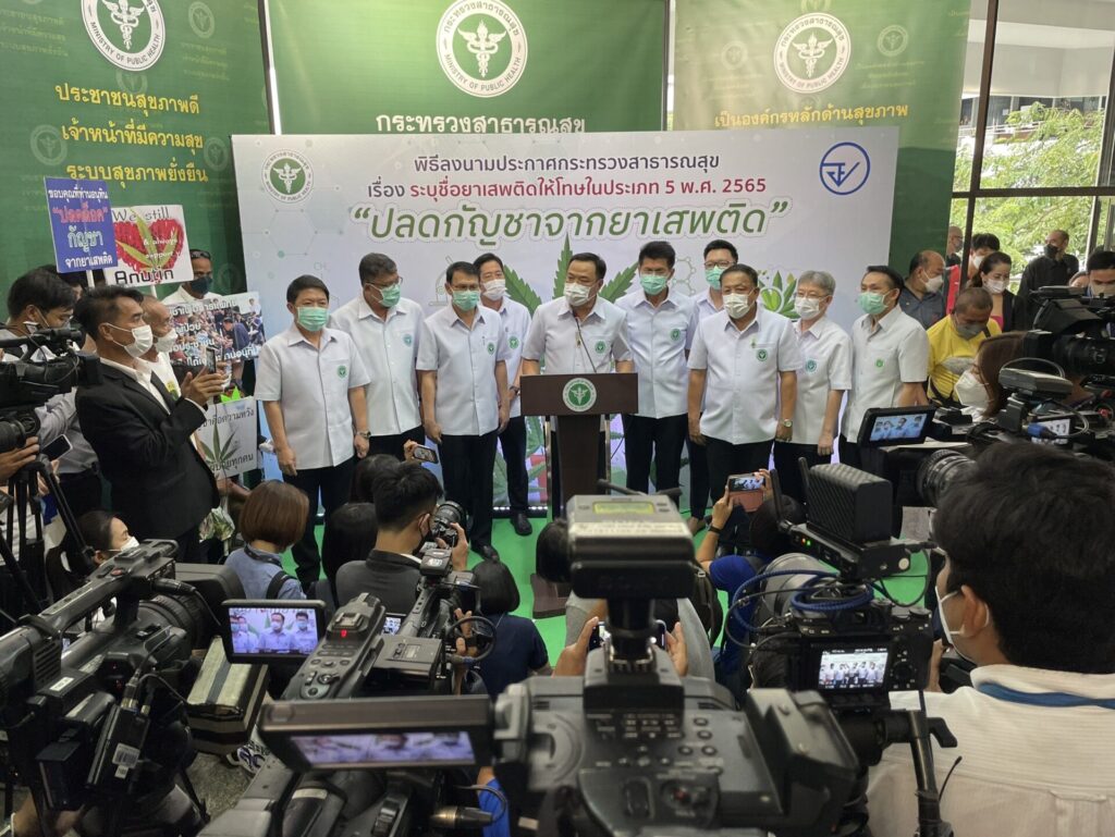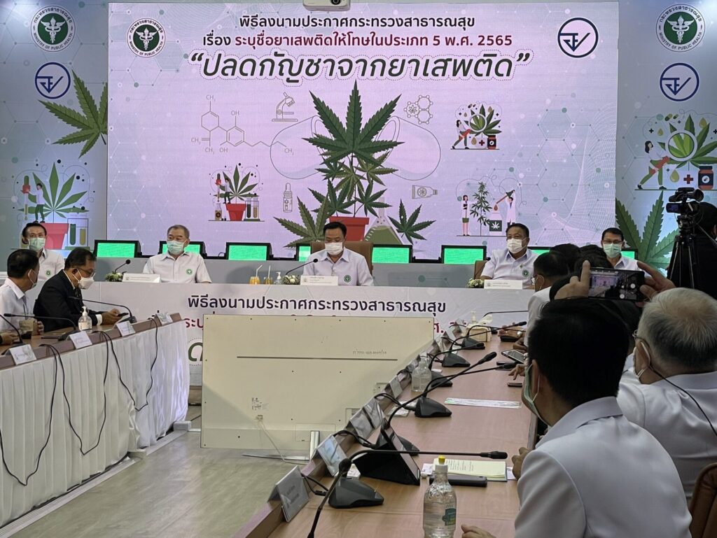 นายอนุทิน ชาญวีรกูล รองนายกรัฐมนตรี และรัฐมนตรีว่าการกระทรวงสาธารณสุข ลงนามประกาศกระทรวงสาธารณสุข เรื่องระบุชื่อยาเสพติดให้โทษในประเภท 5 พ.ศ.2565 ปลดล็อกกัญชาออกจากยาเสพติด เพื่อใช้ประโยชน์ทางการแพทย์และการดูแลสุขภาพของประชาชน รวมถึงการวิจัยและการศึกษาตลอดจนพัฒนาเป็นพืชผลิตภัณฑ์สินค้าอุตสาหกรรมต่างๆ ที่เกิดประโยชน์ในกาสร้างเสริมรายได้ให้ประชาชนและประเทศ
