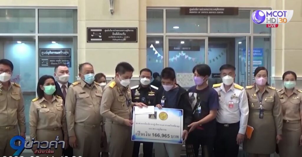 ที่กระทรวงยุติธรรมวันนี้ ว่าที่ร้อยตรีธนกฤต จิตรอารีย์รัตน์ เลขานุการรัฐมนตรีว่าการกระทรวงยุติธรรม ซึ่งได้รับมอบหมายจากนายสมศักดิ์ เทพสุทิน รัฐมนตรีว่าการกระทรวงยุติธรรม พร้อมด้วยผู้บริหารกรมคุ้มครองสิทธิและเสรีภาพ ให้เป็นผู้มอบเงินเยียวยาให้กับน้องฟ้า (เหยื่อ) ที่ถูกนายจ้างทำร้ายร่างกายทุบตีจนใบหน้าผิดรูป เหตุเกิดขึ้นในพื้นที่จังหวัดสิงห์บุรี โดยที่ประชุมคณะอนุกรรมการการพิจารณาค่าตอบแทนฯ ประจำจังหวัดสิงห์บุรี ได้พิจารณาให้ความช่วยเหลือแก่ผู้เสียหายตามพระราชบัญญัติค่าตอบแทนผู้เสียหาย และค่าทดแทนและค่าใช้จ่ายแก่จำเลยในคดีอาญา พ.ศ.2544 และฉบับที่ 2 พ.ศ. 2559 ได้แก่ ค่าใช้จ่ายที่จำเป็นในการรักษาพยาบาล 1,990 บาท (ตามใบเสร็จรับเงิน) ค่าขาดประโยชน์ทำมาหาได้ 114,975 บาท (ตามค่าจ้างขั้นต่ำ) และค่าตอบแทนความเสียหายอื่น 50,000 บาท รวมทั้งหมด 166,965 บาท พร้อมกับค่าความเสียหายอื่นๆ อีก 50,000 บาท รวมเป็นเงิน 166,965 บาท ที่น้องฟ้าจะได้รับทั้งหมด ขณะที่ด้านคดีความนั้นจะให้ยุติธรรมจังหวัดสิงห์บุรีช่วยติดตามความคืบหน้าทางคดีอาญาและแพ่งควบคู่ไปด้วย