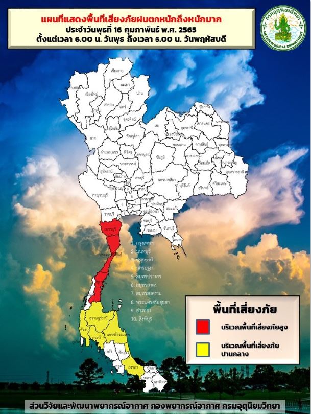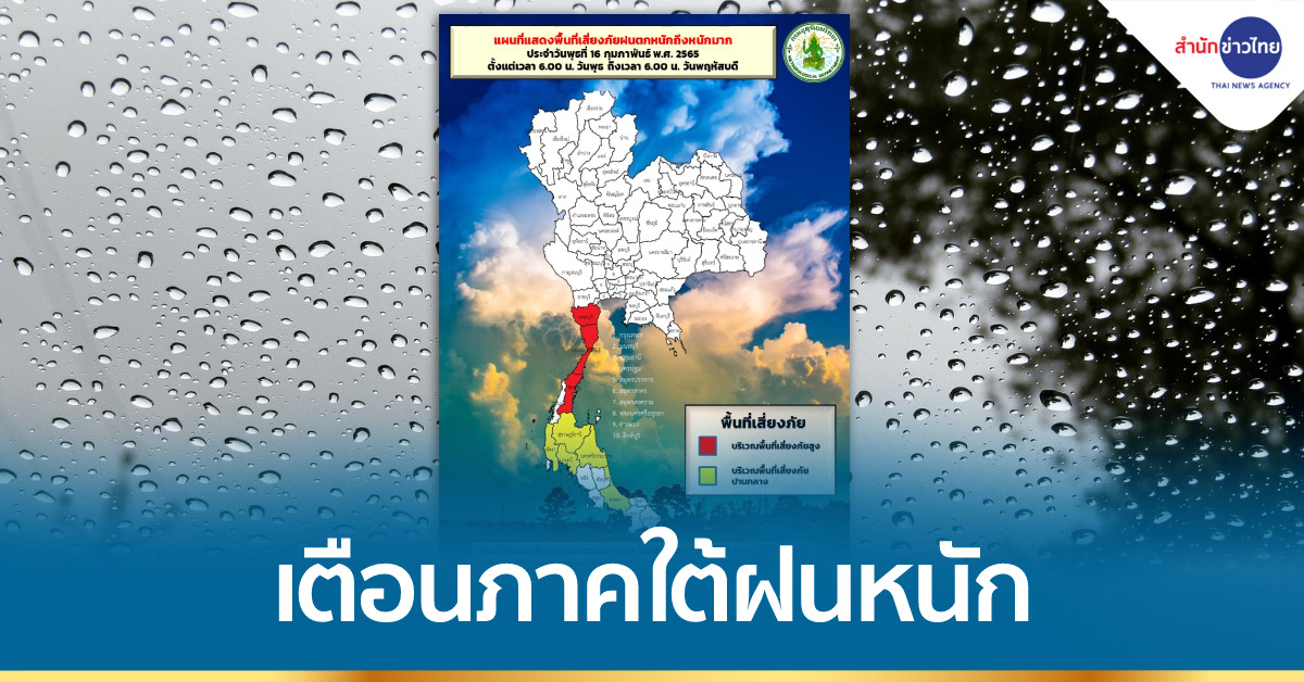 กรุงเทพฯ 16 ก.พ. – กรมอุตุฯ เตือนภาคใต้ ฝนเพิ่มขึ้น และมีฝนตกหนักถึงหนักมากบางแห่ง ขณะที่ภาคอีสาน ตะวันออก ภาคกลาง รวมถึงกรุงเทพฯ และปริมณฑล ยังมีฝนฟ้าคะนอง