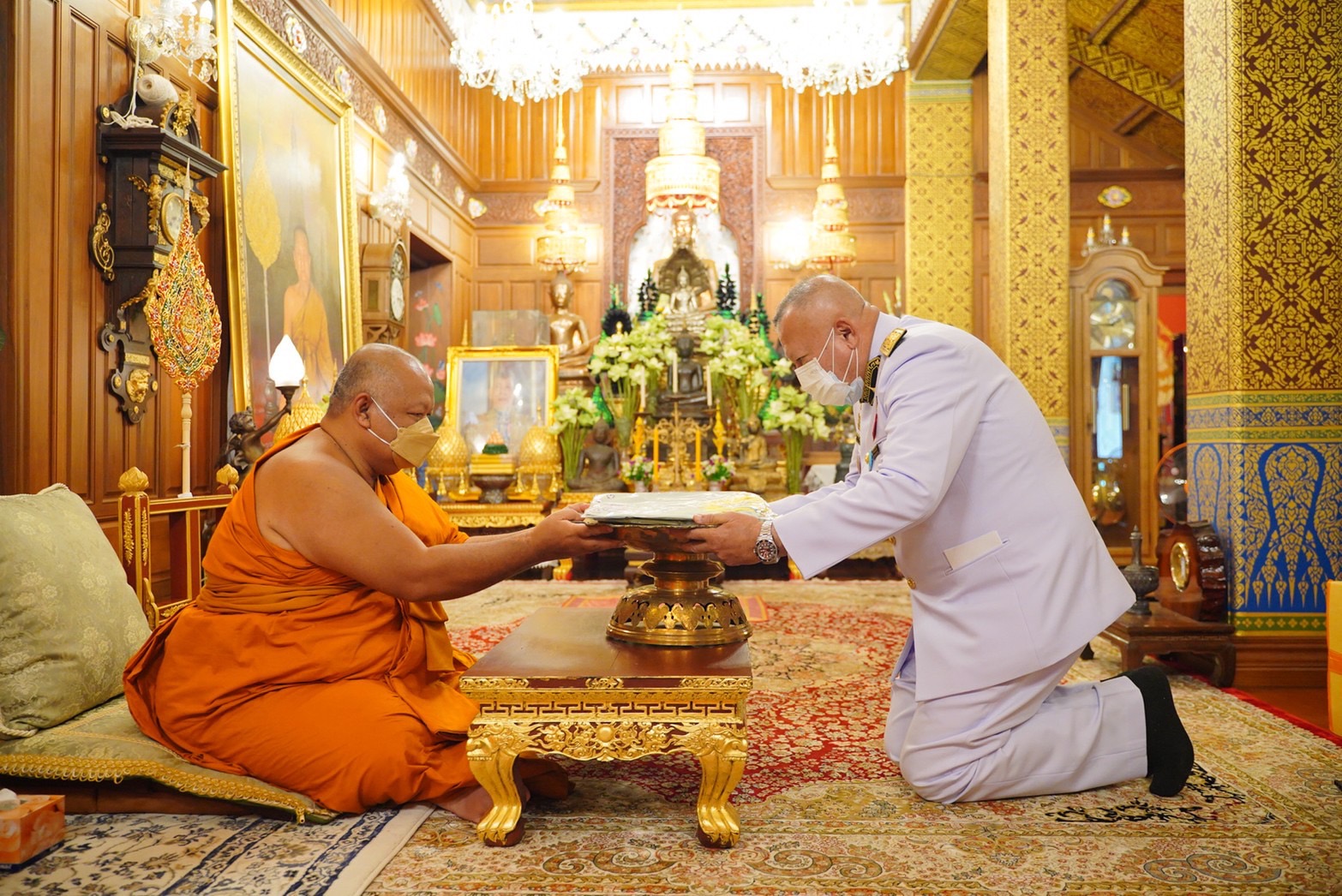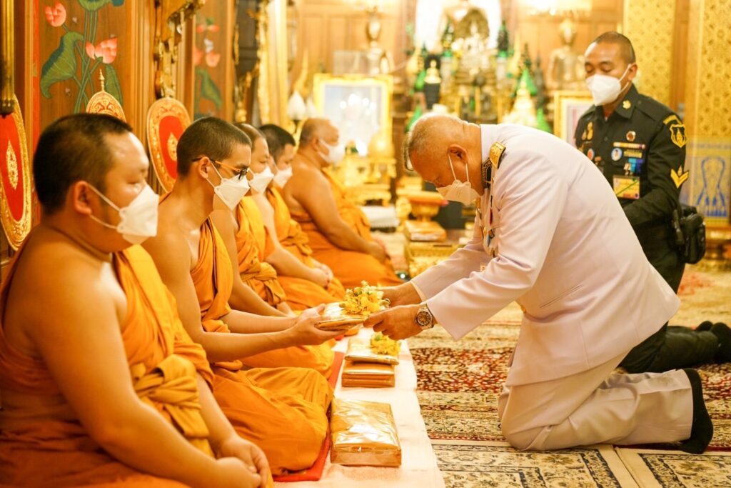 กทม.16ก.พ.-พระบาทสมเด็จพระเจ้าอยู่หัว ทรงพระกรุณาโปรดเกล้าฯ เชิญ ผ้าไตร ย่าม เครื่องสังฆทาน ตู้ยาพระราชทาน ร่มอุ่นไอรัก ถวายแด่ พระราชมหาเจติยาภิบาล ผู้ช่วยเจ้าอาวาสวัดอรุณราชวราราม ประธานสมาคมวัดอรุณสหราชอาณาจักร เมืองนอริช พร้อมต่อยอดโครงการโคกหนองนา สู่ชาวไทยและต่างชาติ ในอังกฤษ