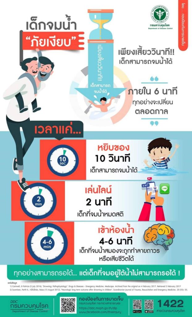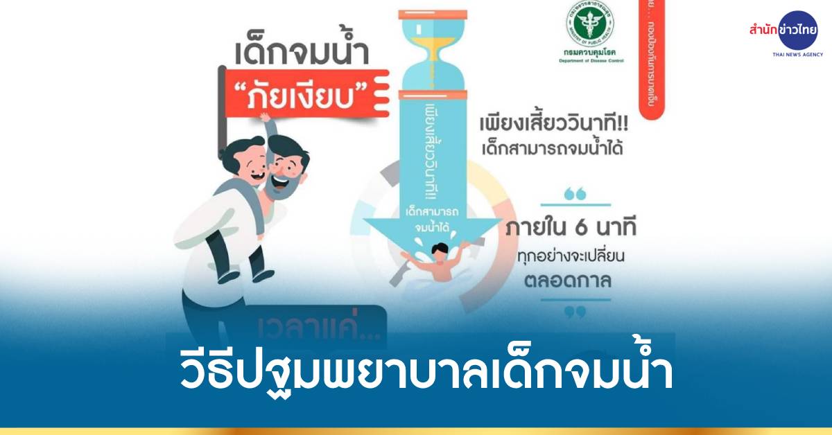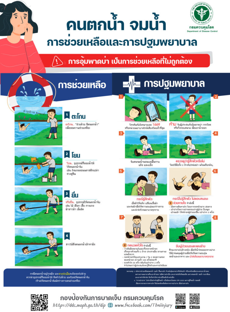 กทม. 19 ก.พ.-กรมควบคุมโรค เตือนผู้ปกครองดูแลเด็กขณะเล่นน้ำเป็นพิเศษ ไม่ควรให้เด็กเข้าถึงแหล่งน้ำได้เองตามลำพัง หากเกิดเหตุเด็กจมน้ำไม่ควรปฐมพยาบาลด้วยวิธีอุ้มพาดบ่าแล้วกระแทก ควรโทรแจ้งขอความช่วยเหลือจากทีมแพทย์กู้ชีพ 1669 ทันที