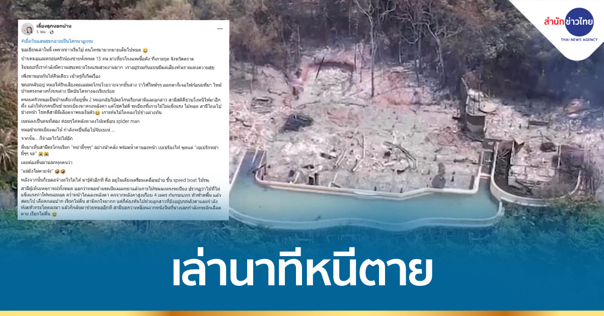 เพจเฟซบุ๊ก “เลี้ยงลูกนอกบ้าน” ของ “หมอโอ๋” พญ.จิราภรณ์ อรุณากูร กุมารแพทย์ผู้เชี่ยวชาญด้านเวชศาสตร์วัยรุ่น ภาควิชากุมารเวชศาสตร์ คณะแพทยศาสตร์โรงพยาบาลรามาธิบดี มหาวิทยาลัยมหิดล เจ้าของเพจเลี้ยงลูกนอกบ้าน เล่าเหตุการณ์ระทึก เมื่อโรงแรมที่พัก บนเกาะกูด จังหวัดตราด เกิดไฟไหม้ โดยระบุว่า เมื่อวันแสนสุขกลายเป็นโศกนาฏกรรม