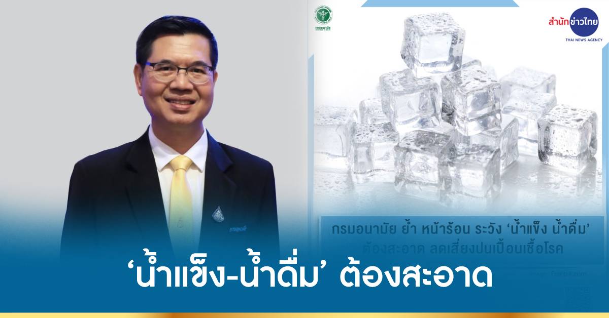 นายแพทย์อรรถพล แก้วสัมฤทธิ์ รองอธิบดีกรมอนามัย กล่าวว่า ในช่วงหน้าร้อนน้ำแข็ง น้ำดื่ม อาจเสี่ยงปนเปื้อนเชื้อโรคที่ทำให้เกิดโรคติดเชื้อในระบบทางเดินอาหารตามมาได้ ผู้บริโภคจึงควรใส่ใจในเรื่องความสะอาดปลอดภัยเป็นหลัก เนื่องจากอุณหภูมิสูงพอเหมาะกับการเจริญเติบโตของเชื้อโรค โดยเลือกน้ำแข็ง น้ำดื่ม จากแหล่งผลิตที่ถูกสุขลักษณะได้มาตรฐาน GMP เมื่อน้ำแข็งละลายจะต้องใส ไม่มีตะกอนขาวขุ่น ๆ อยู่ก้นแก้ว สถานที่เก็บรักษาเพื่อจำหน่ายต้องสะอาด ไม่มีสิ่งสกปรกใกล้ ๆ วางสูงกว่าพื้นหรือทางเดินอย่างน้อย 60 เซนติเมตร ภาชนะที่ใช้บรรจุน้ำแข็งต้องสะอาด ไม่ฉีกขาด แตกร้าว สำหรับน้ำแข็ง ที่แบ่งบรรจุเพื่อจำหน่าย หรือร้านอาหาร แผงลอย ที่ใช้น้ำแข็ง ต้องเก็บในภาชนะที่สะอาด ไม่มีสนิม มีฝาปิด สามารถล้างทำความสะอาดได้ง่าย ไม่ควรวางอยู่บนพื้น ทางเท้า หรือใกล้ถังขยะ ตั้งสูงจากพื้นอย่างน้อย 60 เซนติเมตร ภาชนะที่ใช้ตักต้องมีด้ามจับ ไม่ใช้มือหยิบจับน้ำแข็งโดยตรง และที่สำคัญห้ามนำอาหาร หรือเครื่องดื่มมาแช่ในน้ำแข็งที่ใช้บริโภคโดยเด็ดขาด