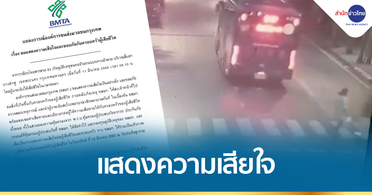 แถลงการณ์ ขององค์การขนส่งมวลชนกรุงเทพ ได้กล่าวว่า ขอแสดงความเสียใจ และขออภัยต่อสิ่งที่เกิดขึ้นกับครอบครัวผู้เสียชีวิต โดยในเบื้องต้น ขสมก. พร้อมชดเชยค่าเสียหายและเยียวยาต่อผู้ได้รับความเสียหายให้กับครอบครัวของผู้เสียชีวิตทั้งหมด ทั้งในส่วนของความคุ้มครองจาก พ.ร.บ.คุ้มครองผู้ประสบภัยจากรถ, ประกันภัยรถยนต์ที่คุ้มครองผู้ประสบภัยที่ ขสมก. และกองทุนอุบัติเหตุของ ขสมก. ทั้งนี้ ขสมก. จะปรับปรุงระบบการทำงาน และการให้บริการที่ดีขึ้น และคำนึงถึงความปลอดภัยของประชาชนเป็นสำคัญ.-สำนักข่าวไทย