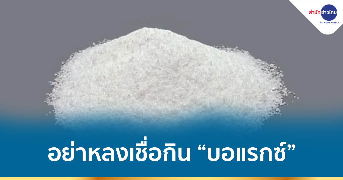 อย. 14 มี.ค.-ผอ.กองอาหาร อย. เตือนอย่าหลงเชื่อชวนกิน “บอแรกซ์” ชี้เป็นเฟคนิวส์ บอแรกซ์เป็นสารห้ามใช้ในอาหาร มีอันตราย ระคายเคืองระบบทางเดินอาหาร ส่งผลไตทำงานล้มเหลว หรืออาจถึงขั้นเสียชีวิต