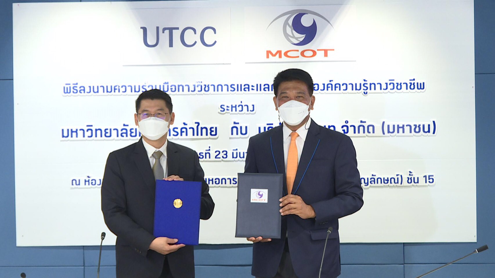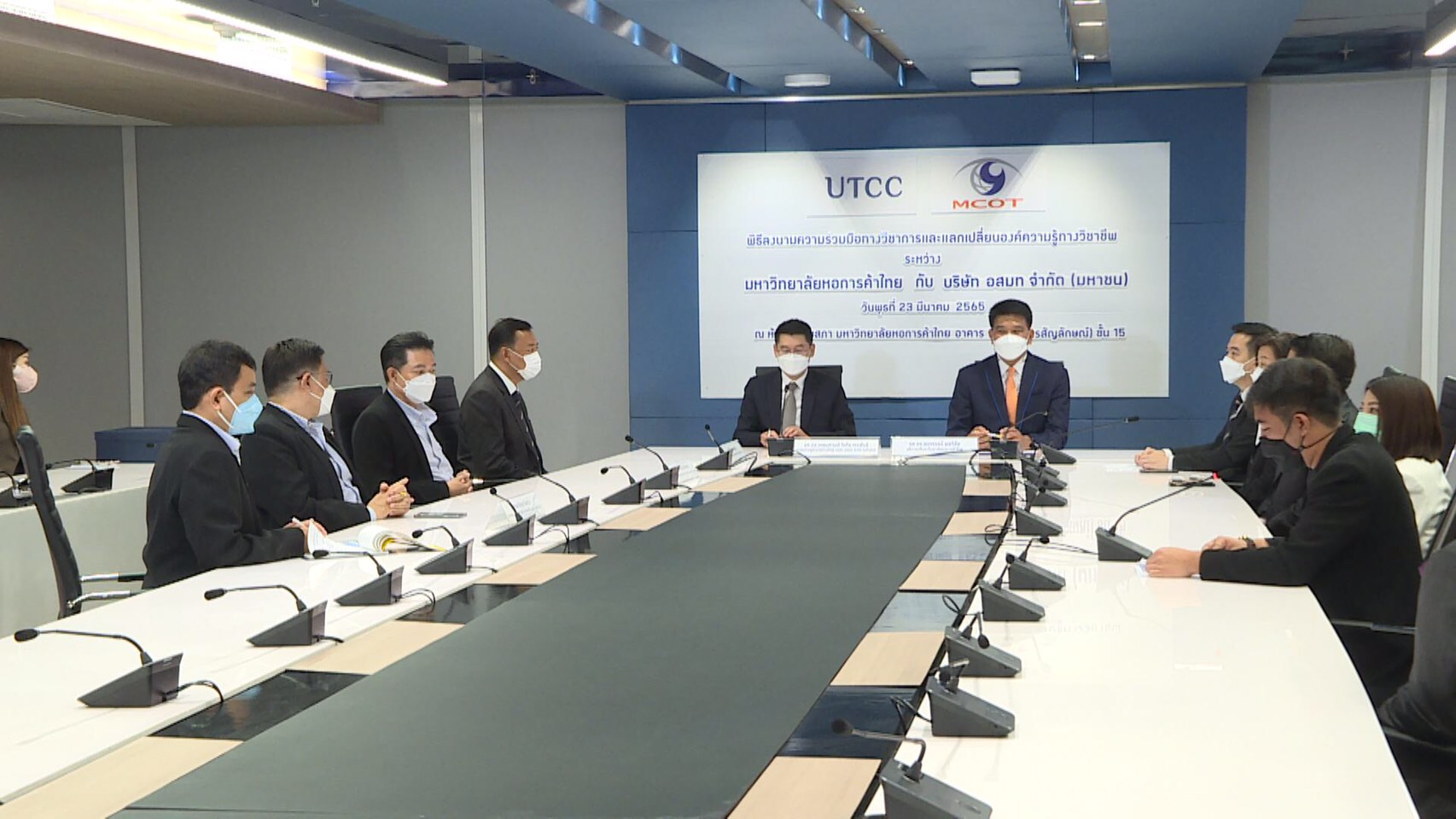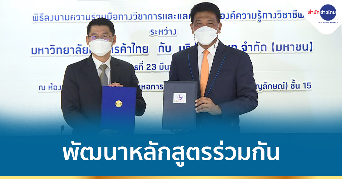 กรุงเทพฯ 23 มี.ค.-อสมท จับมือ ม.หอการค้าไทย ลงนามความร่วมมือทางวิชาการ แลกเปลี่ยนองค์ความรู้จากผู้เชี่ยวชาญ พัฒนาหลักสูตรร่วมกัน สร้างบุคลากรคุณภาพสู่สังคม