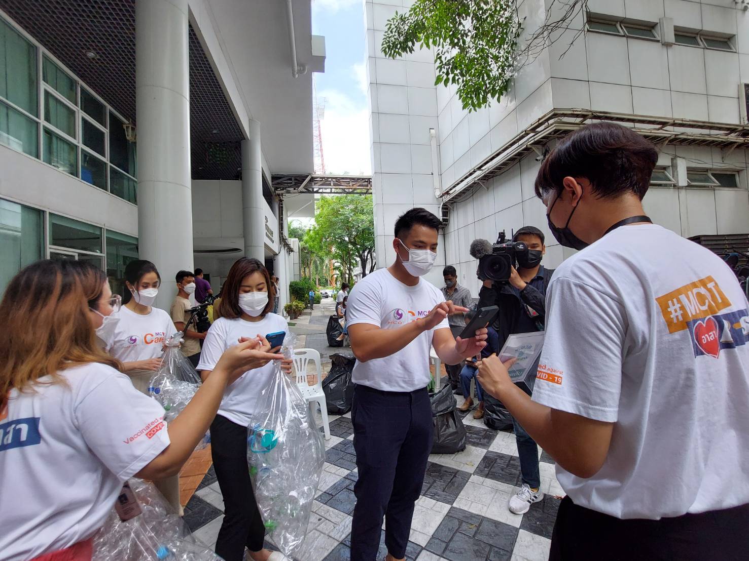 วันนี้ (25 มี.ค.) คณะผู้บริหาร อสมท นายสมหมาย สุวรรณวงษ์ รก.ผู้ช่วยกรรมการผู้อำนวยการใหญ่ สำนักการตลาด และนายผาติยุทธ ใจสว่าง ผู้ช่วยกรรมการผู้อำนวยการใหญ่ สำนักโทรทัศน์ นำทีมผู้ประกาศข่าว พิธีกร อาทิ คุณบุ๋ม ปนัดดา วงศ์ผู้ดี, เต็นท์ วศิน บุณยาคม, ตั่ว สุทิวัส หงส์พูนพิพัฒน์, จิ๊บ วรรณศิริ ศิริวรรณ, เปิ้ล กุลธิดา พงษ์แจ่ม และพนักงาน อสมท ร่วมกิจกรรม MCOT Cares : ฃ.ขวด ขอเทิร์น แลกขวดพลาสติก ครั้งที่ 1 โดยมุ่งส่งเสริมพฤติกรรมการแยกขยะให้กับพนักงานในองค์กร เพื่อนำขยะพลาสติกกลับเข้าสู่ระบบรีไซเคิล โดยเปิดให้นำขวดพลาสติกสะอาดมาแลก เพื่อสะสมแต้ม รับของที่ระลึก เดือนละ 1 ครั้ง หรือทุกวันศุกร์สุดท้ายของเดือน เริ่มตั้งแต่วันนี้ ไปจนถึงเดือนธันวาคม 2565