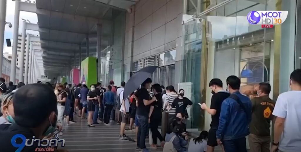 หลังจากช่วงเช้ามีภาพผู้คนจำนวนมากต่อคิวแห่เข้าห้างเพื่อซื้อนาฬิกาข้อมือ Omega x Swatch คอลเลกชัน BIOCERAMIC MOONSWATCH ที่เป็นการร่วมกันออกแบบของ 2 แบรนด์ดังอย่าง Swatch และ Omega ที่มีกำหนดจำหน่ายวันแรกที่ช็อป Swatch ใจกลางกรุง 3 สาขา คือ สยามพารากอน เซ็นทรัลเวิลด์ และไอคอนสยาม ในวันนี้ (26 มี.ค.2565) ทำให้หลายคนแห่ไปเข้าคิวเข้าห้างฯ ล้นหลาม บางคนไปนั่งรอข้ามคืน หลายคนเดินทางไปตั้งแต่เช้ามืดจนแน่นทางเข้าห้างฯ ทำให้บางช่วงเกิดเหตุชุลมุนวุ่นวายขึ้น จนทาง Swatch ประเทศไทยต้องประกาศยกเลิกการจำหน่าย