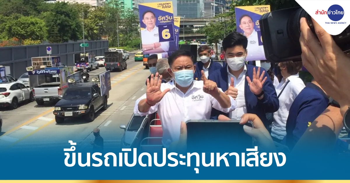 หลังเป็นผู้สมัครรับเลือกตั้งผู้ว่าราชการกรุงเทพมหานครแล้ว พล.ต.อ.อัศวิน ขวัญเมือง หมายเลข 6 พร้อมด้วยผู้สมัคร ส.ก. และสมาชิกกลุ่มรักษ์กรุงเทพ ขึ้นรถบัสสองชั้นแบบเปิดประทุน ตระเวนออกหาเสียงกับประชาชนชาวกรุงเทพมหานคร โดยออกจากศาลาว่าการ กทม.2 ดินแดง มุ่งหน้าไปยังถนนวิภาวดีรังสิต เลี้ยวซ้ายสามเหลี่ยมดินแดง ไปยังอนุสาวรีย์ชัยสมรภูมิเข้าสู่ถนนพญาไท จากนั้นเลี้ยวขวาเข้าสู่ถนนศรีอยุธยา ถนนสวรรคโลก มุ่งหน้าถนนหลานหลวง และถนนราชดำเนิน โดยตลอดเส้นทาง พล.ต.อ.อัศวิน และทีมงาน ได้ประกาศนโยบายหาเสียง และโชว์มือเป็นสัญลักษณ์เลข 6 ซึ่งเป็นเบอร์ของ พล.ต.อ.อัศวิน เชิญชวนให้ชาวกรุงเทพฯ มาเลือกตั้งในวันที่ 22 พฤษภาคม 65 จากนั้นเดินทางไปยังศาลหลักเมือง เพื่อสักการะศาลหลักเมือง และพระแม่ธรณีบีบมวยผม.-สำนักข่าวไทย