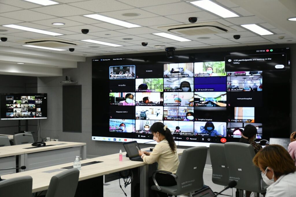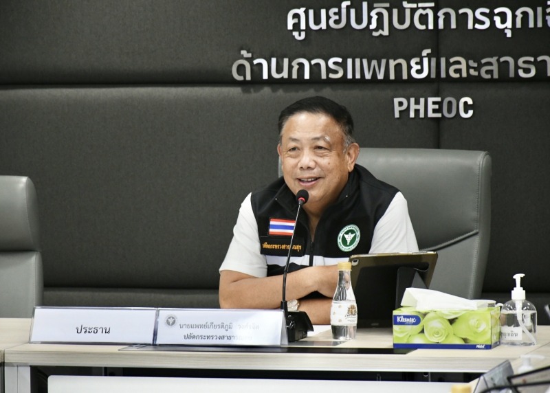 ที่สำนักงานปลัดกระทรวงสาธารณสุข จ.นนทบุรี นพ.เกียรติภูมิ วงศ์รจิต ปลัดกระทรวงสาธารณสุข พร้อมคณะผู้บริหาร ประชุมทางไกลผ่านระบบวิดีโอ กับนายแพทย์สาธารณสุขจังหวัด และผู้อำนวยการโรงพยาบาลทั่วประเทศ ในการเตรียมความพร้อมด้านการแพทย์และสาธารณสุขช่วงเทศกาลสงกรานต์ ปี 2565 ซึ่งจะมีการคุมเข้มระหว่างวันที่ 11-17 เมษายน 2565 เพื่อรองรับสถานการณ์ฉุกเฉินที่อาจเกิดขึ้นพร้อมไปกับการเตรียมมาตรการเพื่อป้องกันการแพร่และรับเชื้อโควิด-19 โดยเฉพาะในกลุ่มบุคลากรทางการแพทย์ที่มีความเสี่ยงจากการให้บริการประชาชน