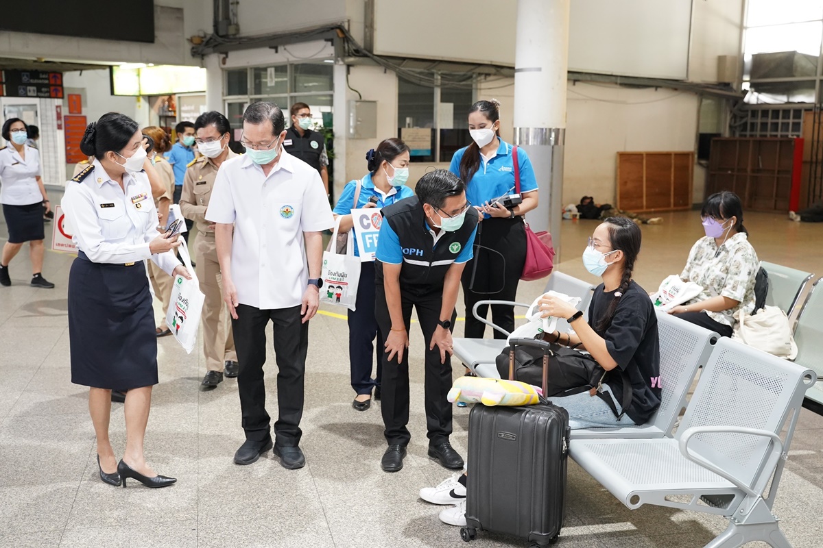 นพ.อรรถพล แก้วสัมฤทธิ์ รองอธิบดีกรมอนามัย พร้อมด้วยคณะผู้บริหาร สถาบันพัฒนาสุขภาวะเขตเมือง บริษัท ขนส่ง จำกัด (บขส.) สำนักอนามัย และสำนักงานเขตจตุจักร กรุงเทพมหานคร ลงพื้นที่ตรวจเยี่ยมสถานีขนส่งผู้โดยสารกรุงเทพ (จตุจักร) ตามแนวปฏิบัติด้านสาธารณสุข เพื่อป้องกันการแพร่ระบาดโควิด-19 สำหรับการเดินทาง และใช้ชีวิตอย่างปลอดภัยตามมาตรการ COVID Free Setting สำหรับการเดินทางด้วยขนส่งสาธารณะ