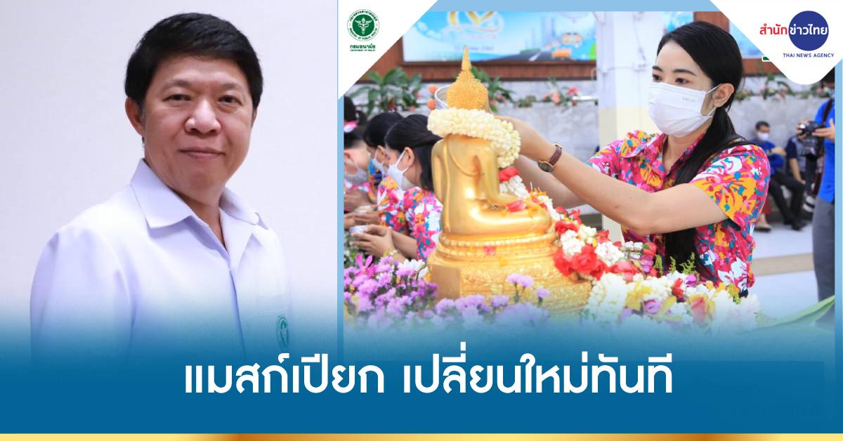 นายแพทย์สุวรรณชัย วัฒนายิ่งเจริญชัย อธิบดีกรมอนามัย กล่าวว่า เทศกาลสงกรานต์เป็นช่วงหยุดยาวที่ประชาชนนิยมเดินทางไปท่องเที่ยวยังสถานที่ต่างๆ ยังเน้นย้ำให้ทุกคนสวมหน้ากากให้ถูกต้องตลอดเวลา เพราะจากผลการสำรวจอนามัยโพลประเด็นผลการสังเกตผู้อื่นสวมหน้ากาก และปฏิบัติตามมาตรการป้องกันโรคของสถานที่ท่องเที่ยว ตั้งแต่วันที่ 1- 11 เมษายน 2565 พบว่า เห็นทุกคนสวมถูกต้อง ร้อยละ 78 เห็นคนสวมหน้ากากไม่ถูกต้องหรือไม่สวม ร้อยละ 22 ส่วนการปฏิบัติตามมาตรการป้องกันโรคของสถานที่ท่องเที่ยว พบว่ามีการกำหนดจุดเข้า-ออก และวัดอุณหภูมิก่อนเข้า ร้อยละ 74 มีการกำกับการสวมหน้ากากตลอดเวลาและสวมถูกต้อง และมีจุดบริการล้างมือด้วยสบู่และน้ำหรือแอลกอฮอล์อย่างเพียงพอ ร้อยละ 62 ในส่วนของประเด็นความความเสี่ยงที่พบในสถานที่ท่องเที่ยว พบว่า นักท่องเที่ยวหนาแน่นและแออัด ไม่เว้นระยะห่าง ร้อยละ 64 มีสถานที่ ห้องน้ำ ห้องส้วมไม่สะอาด มีกลิ่นเหม็น ร้อยละ 33 และมีการระบายอากาศไม่ดี ไม่มีอากาศถ่ายเท รวมทั้งมีกิจกรรมที่ทำให้เกิดการรวมกลุ่มร้อยละ 32