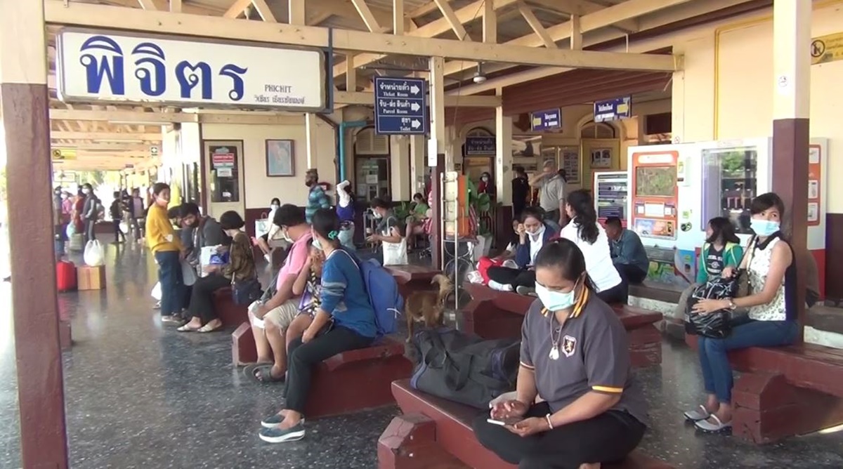 ส่วนการเดินทางโดยรถไฟวันนี้ บรรยากาศที่สถานีรถไฟพิจิตร ตั้งแต่ช่วงเช้า มีประชาชนมารอโดยสารรถไฟเพื่อกลับกรุงเทพฯ กันอย่างคึกคัก โดยตั๋วโดยสารรถไฟตลอดทั้งวันกว่า 10 ขบวน ประเภทชั้น 1 และชั้น 2 ทั้งรถด่วนสปรินเตอร์ รถด่วน และรถเร็ว เต็มหมดแล้วทุกที่นั่ง เหลือเพียงตั๋วโดยสารนั่งพัดลมชั้น 3 ที่พ่วงเสริมมากับขบวนรถแต่ละขบวนเท่านั้นที่ยังเหลืออยู่. – สำนักข่าวไทย