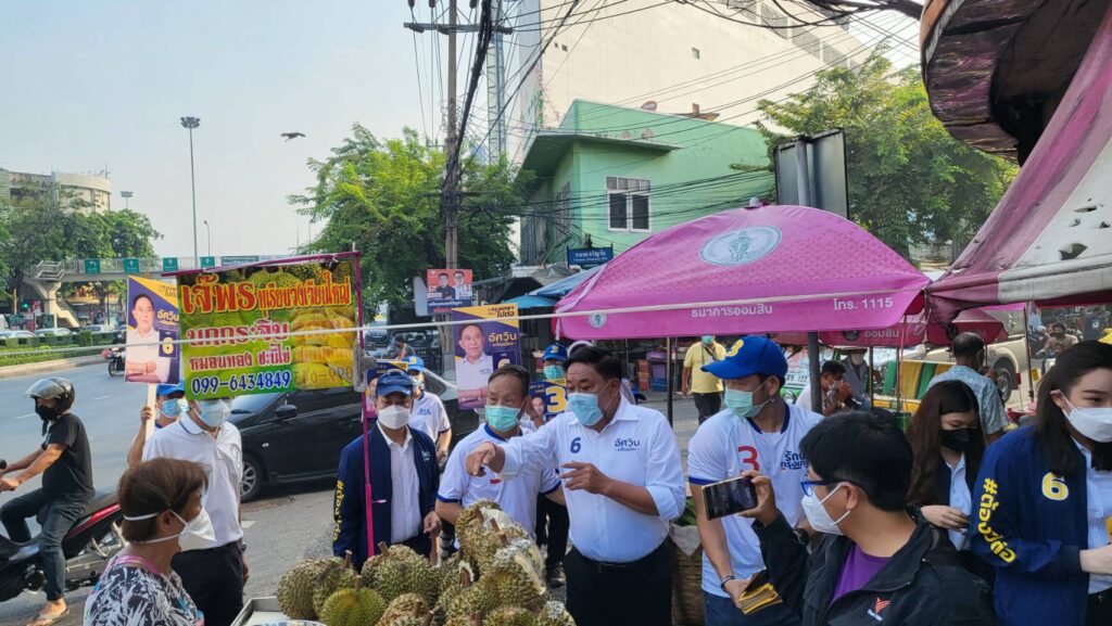 จากนั้นเดินทาง ต่อไปยังเขตบางกอกน้อยลงพื้นที่ตลาดบางขุนศรี ถนนจรัญสนิทวงศ์ พร้อมผู้สมัคร ส.ก.เขตบางกอกน้อย หมายเลข 5 ร.ท.จักรพงษ์ วุฑฒยากร โดยตอบคำถามผู้สื่อข่าวหลังลงพื้นที่หลายประเด็น