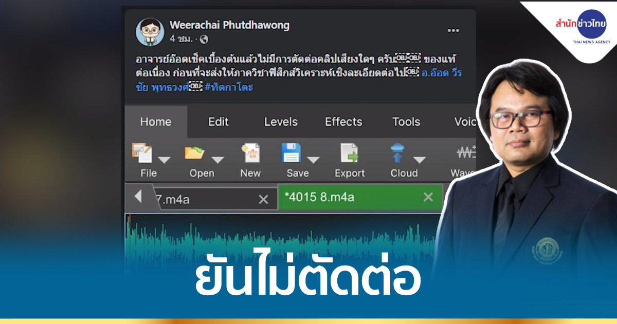 กรุงเทพฯ 1 พ.ค.- กรณีคลิปเสียงคล้ายอดีตพระกาโตะ ขณะสนทนากับผู้หญิงสาวรายหนึ่ง ล่าสุด ทาง อ.อ๊อด- วีรชัย พุทธวงศ์ ยืนยันว่าคลิปดังกล่าวไม่ได้ถูกตัดต่อ จากนี้จะส่งให้ภาควิชาฟิสิกส์วิเคราะห์เชิงละเอียดต่อไป