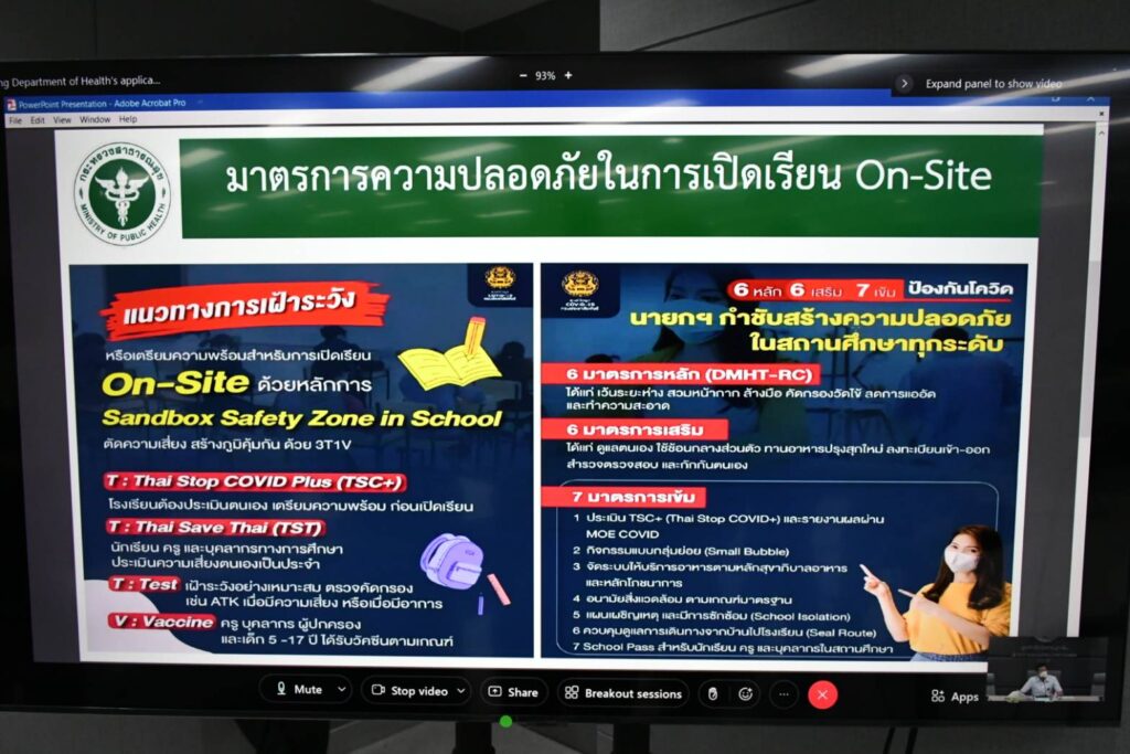 ด้านนายสุภัทร จำปาทอง ปลัดกระทรวงศึกษาธิการ กล่าวว่า ปัจจุบันโรงเรียนในสังกัด สพฐ.มี 29,200 แห่ง โรงเรียนสังกัดเอกชน 4,100 แห่ง โรงเรียนสังกัดอื่นๆ ทั้ง อปท. มหาดไทย กทม. กระทรวงวัฒนธรรม กระทรวงการพัฒนาสังคมและความมั่นคงของมนุษย์ 1,800 แห่ง ซึ่งทั้งหมดร้อยละ 90 จะเปิดเทอมวันที่ 17 พ.ค.นี้ ทั้งนี้ กระทรวงศึกษาธิการ และกระทรวงสาธารณสุข มีความพร้อมปฏิบัติตามมาตรการที่วางไว้ แต่ท้ายที่สุดคือโรงเรียนต้องปฏิบัตตามมาตรการ 6-6-7 อย่างเคร่งครัด เพราะทุกครั้งที่พบการแพร่ระบาดในสถานศึกษาเกิดจากการย่อหย่อนในสถานศึกษานั้นเอง สิ่งที่น่ากลัวคือใน รร.ประจำ.-สำนักข่าวไทย