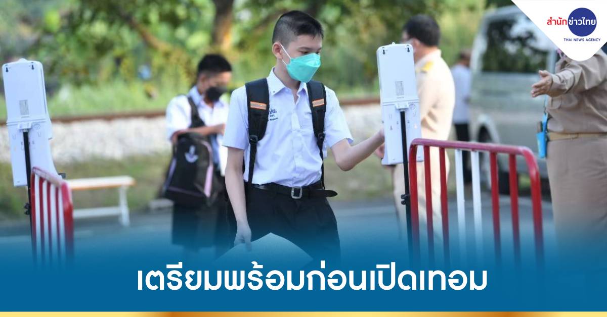 ในส่วนการเตรียมความพร้อมมาตรการเฝ้าระวัง ป้องกัน และควบคุมการแพร่ระบาดโควิด-19 ในโรงเรียนสังกัด กทม. มีดังนี้ 1. เน้นย้ำให้นักเรียน ข้าราชการครูและบุคลากรทางการศึกษา กทม. บุคลากรของโรงเรียน ผู้ปกครอง และผู้มาติดต่อราชการ ต้องสวมหน้ากากอนามัยหรือหน้ากากผ้าตลอดเวลา 2. จัดให้มีการเว้นระยะห่างในห้องเรียน ระหว่างทางเดิน หรือในขณะทำกิจกรรมในโรงเรียน การย้ายห้องเรียน การเหลื่อมเวลาเรียนหรือเวลาพักรับประทานอาหาร 3. ตรวจคัดกรองอุณหภูมิร่างกายนักเรียน ข้าราชการครูและบุคลากรทางการศึกษา กทม. บุคลากรของโรงเรียน และผู้มาติดต่อราชการทุกคนที่เข้ามาในบริเวณโรงเรียน การทำความสะอาดในโรงเรียน เพื่อลดความเสี่ยงการติดเชื้อโควิด-19 ในโรงเรียน และ 4. ทำความสะอาด พื้นผิวสัมผัสต่าง ๆ ที่ใช้ร่วมกัน อาทิ โต๊ะ-เก้าอี้ในห้องเรียน สนามเด็กเล่น ห้องน้ำ ลูกบิดประตู ตลอดจนอาคารสถานที่และบริเวณโรงเรียนโดยสม่ำเสมอและต่อเนื่อง พร้อมจัดให้มีที่ล้างมือด้วยสบู่ เจลแอลกอฮอล์ หรือน้ำยาฆ่าเชื้อโรค อย่างทั่วถึงเพียงพอ