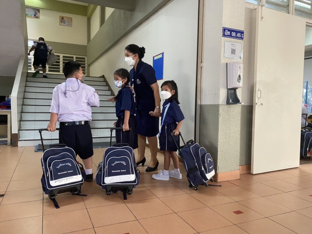 ทั้งนี้ ก่อนการเปิดเรียนวันแรก ครูได้ให้ผู้ปกครองและนักเรียน กรอกใบประเมินตนเองก่อนว่ามีความเสี่ยงหรือไม่ และการตรวจเอทีเคไม่ใช่เงื่อนไข ไม่จำเป็นต้องแสดงหลักฐานการตรวจเอทีเคแล้ว หากพบว่ามีความเสี่ยง รร.มีเอทีเคให้นักเรียนและครูได้นำไปตรวจ เพื่อไม่ให้เป็นภาระด้านค่าใช้จ่ายผู้ปกครอง