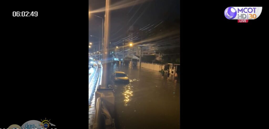 เมื่อเวลา 00.50 น.ที่ผ่านมา ผู้สื่อข่าวรายงานว่า เมื่อช่วงค่ำที่ผ่านมาเกิดฝนตกหนักในหลายพื้นที่กรุงเทพมหานคร และปริมณฑล พบว่ามีปริมาณน้ำท่วมขังสูงหลายแห่ง เช่น ถนนวิภาวดี-รังสิต ขาเข้า ช่องคู่ขนาน ช่วงแยกหลักสี่ ระดับน้ำสูงเกือบครึ่งล้อรถยนต์ ถนนรัชดาภิเษก ตั้งแต่แยกรัชโยธิน หน้าศาลอาญา ระดับน้ำท่วมขังสูงเกินทางเท้า บริเวณแยกเกษตร ถนนพหลโยธิน ขาเข้า-ขาออก มีน้ำท่วมขังสูง รถยนต์วิ่งได้เพียง 1 ช่องทาง บางจุดมีรถจอดเสียหลายคัน