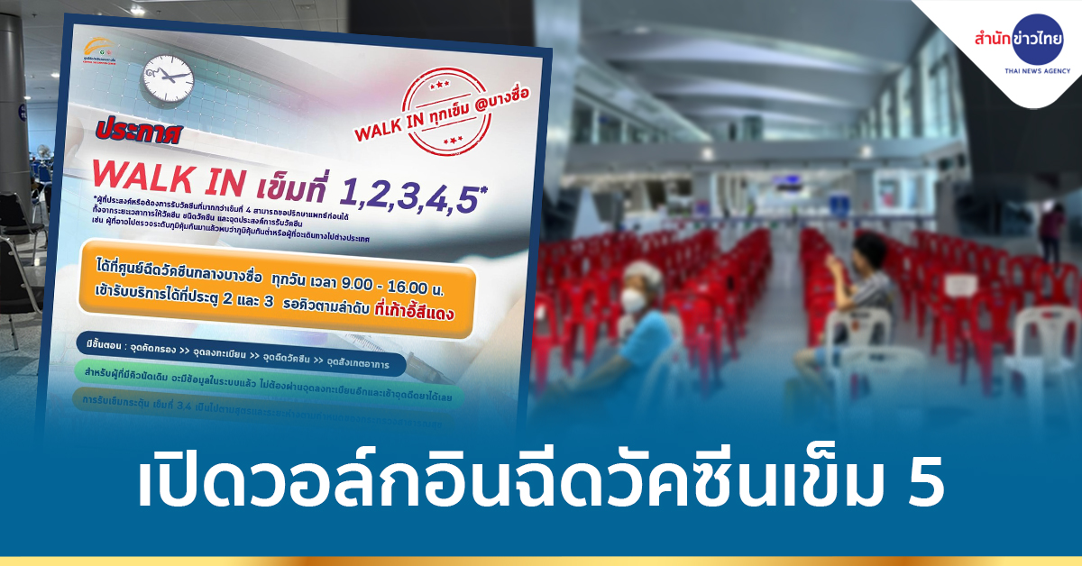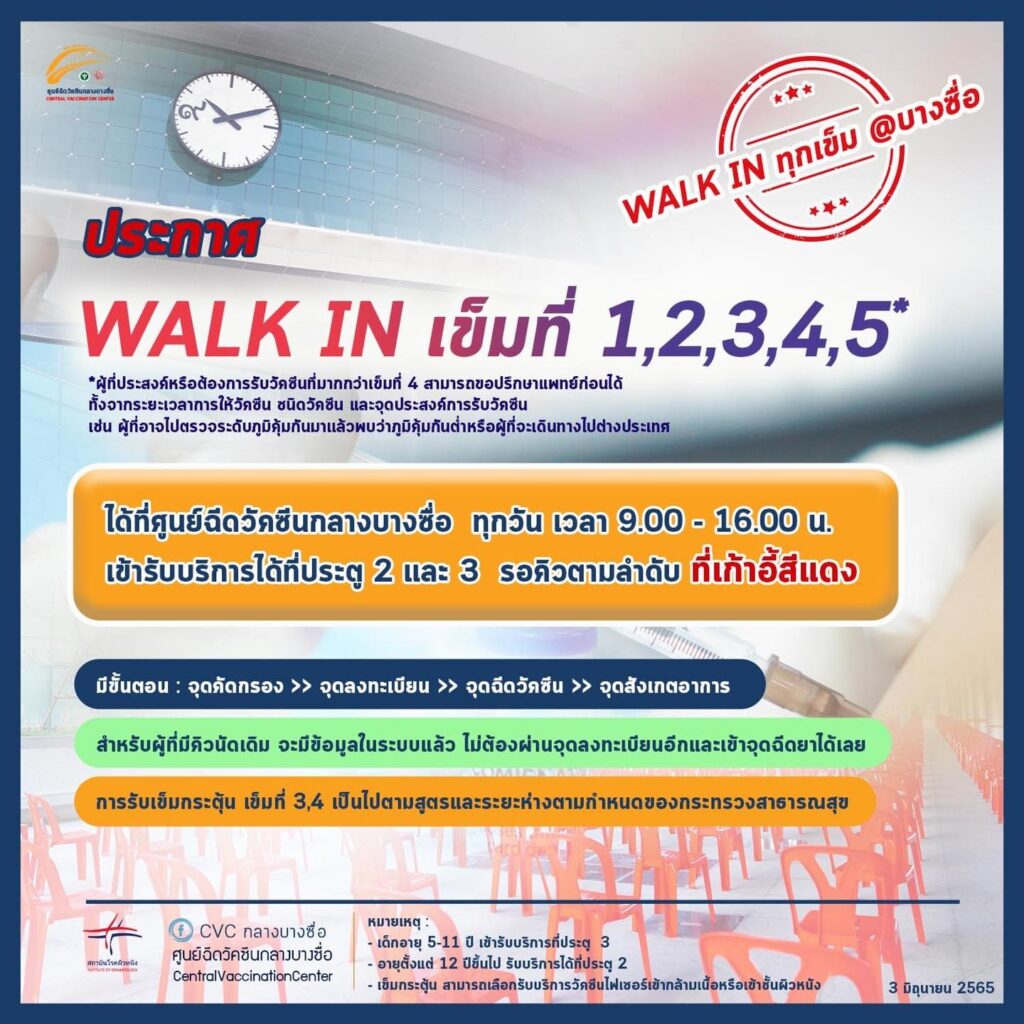 ศูนย์ฉีดวัคซีนกลางบางซื่อ เปิดให้ประชาชนวอล์กอินฉีดวัคซีนเข็ม 5 สำหรับผู้ที่ฉีดวัคซีนเข็ม 4 ครบ 90 วัน โดยเปิดฉีดวัคซีนทั้งเเบบเต็มโดสทางกล้ามเนื้อ เเละครึ่งโดสใต้ผิวหนัง โดยพบว่ายังมีความสับสนเล็กน้อย เนื่องจากเดิมอนุญาตให้ฉีดเข็ม 5 สำหรับผู้ที่ฉีดเข็ม 4 ครบ 180 วัน เเต่ในช่วงบ่าย มีการปรับเปลี่ยน อนุญาตให้ฉีดเข็ม 5 สำหรับผู้ที่ฉีดเข็ม 4 เเล้วเกิน 90 วัน