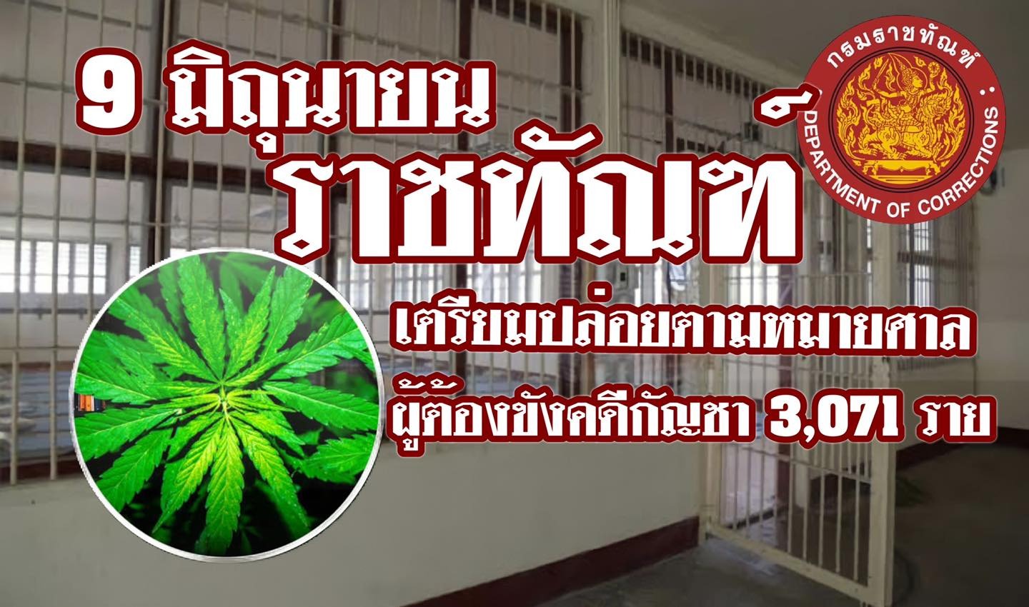 วันพฤหัสบดีที่ 9 มิถุนายน 2565 กรมราชทัณฑ์ เริ่มปล่อยตัวและเปลี่ยนแปลงโทษผู้ต้องขังคดีความผิดเกี่ยวกับพืชกัญชาตามหมายศาล ตามประกาศกระทรวงสาธารณสุข เรื่อง ระบุชื่อยาเสพติดให้โทษในประเภท 5 พ.ศ.2565 ที่เผยแพร่บนเว็บไซต์ราชกิจจานุเบกษา เมื่อวันที่ 9 กุมภาพันธ์ 2565 ซึ่งส่งผลให้การผลิต นำเข้า ส่งออก จำหน่าย เสพ หรือมีไว้ในครอบครองซึ่งพืชกัญชา หรือการกระทำอื่นเกี่ยวกับพืชกัญชาก่อนวันที่ 9 มิถุนายน 2565 จะไม่เป็นความผิดอีกต่อไป และให้ผู้ที่ได้กระทำการนั้นพ้นจากการเป็นผู้กระทำความผิด ถ้ามีคำพิพากษาถึงที่สุดให้ลงโทษแล้วให้ถือว่าผู้นั้นไม่เคยต้องคำพิพากษาว่าได้กระทำความผิดนั้น หากรับโทษอยู่ก็ให้การลงโทษนั้นสิ้นสุดลง โดยเริ่มมีผลบังคับใช้ในวันนี้ (9 มิถุนายน 2565)