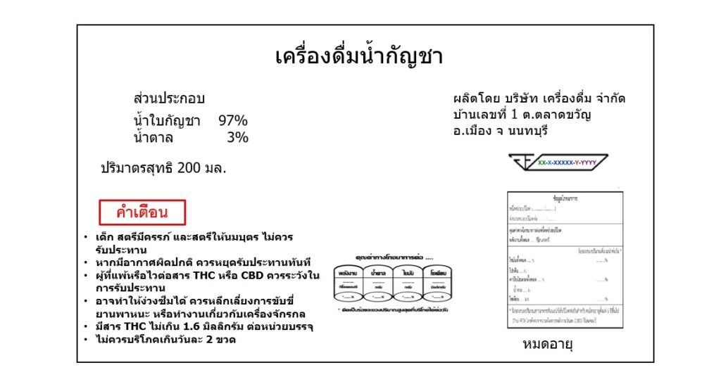 เลขาธิการ อย. กล่าวเพิ่มเติมว่า สำหรับผู้บริโภคควรเลือกซื้อผลิตภัณฑ์ที่ได้รับอนุญาตถูกต้อง โดยสังเกตฉลากผลิตภัณฑ์อาหาร ต้องแสดงเลขสารบบอาหาร ชื่ออาหารแสดงชื่อส่วนของพืชกัญชาหรือกัญชงหรือสารสกัด แคนนาบิไดออล (CBD) และข้อความ “คําเตือน” ด้วยตัวอักษรขนาดไม่เล็กกว่า 1.5 มม. ในกรอบสี่เหลี่ยม สีของตัวอักษรตัดกับสีของพื้นกรอบ และสีกรอบตัดกับสีของพื้นฉลาก ระบุข้อความ “เด็ก สตรีมีครรภ์ และสตรีให้นมบุตร ไม่ควรรับประทาน” “หากมีอาการผิดปกติ ควรหยุดรับประทานทันที” “ผู้ที่แพ้หรือไวต่อสาร THC หรือ CBD ควรระวังในการรับประทาน” และ “อาจทำให้ง่วงซึมได้ ควรหลีกเลี่ยงการขับขี่ยานพาหนะ หรือทำงานเกี่ยวกับเครื่องจักรกล”