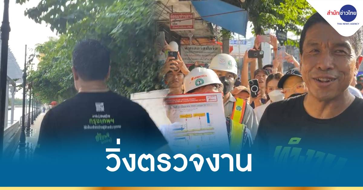 กรุงเทพฯ 25 มิ.ย.-ผู้ว่าฯ ชัชชาติ สุดแกร่ง! นำวิ่งออกกำลังกายแต่เช้าตรู่ จากสวนลุมพินีไปแยกลำสาลี สำรวจปัญหา พร้อมลุยตรวจงานคืนพื้นผิวจราจร พบน้ำท่วมขังจากฝนตกเป็นบางช่วง ขณะที่แยกลำสาลี ล่าสุดผู้รับเหมาคืนผิวจราจรได้เพิ่ม 1 ช่องทาง