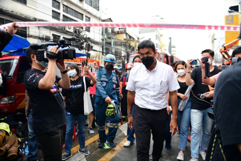 (26 มิ.ย.65) นายชัชชาติ สิทธิพันธุ์ ผู้ว่าราชการกรุงเทพมหานคร เปิดเผยภายหลังตรวจเหตุเพลิงไหม้อาคารย่านสำเพ็ง เขตสัมพันธวงษ์ ว่า เบื้องต้นสามารถควบคุมเพลิงได้ระดับหนึ่งแล้ว แต่ยังต้องสังเกตความอันตรายของการถล่มของอาคารเนื่องจากมีการฉีดน้ำ ซึ่งมีตึกหนึ่งที่พื้นอาคารมีการยุบตัวลงมาแล้ว สาเหตุของเพลิงไหม้เท่าที่รับรายงานเบื้องต้น มาจากหม้อแปลงไฟระเบิด ลุกลามไปด้านในอาคาร รวมถึงมีสายไฟและสายสื่อสารจำนวนมากที่อาจเป็นส่วนช่วยให้ไฟลุกลามไป ประกอบกับมีวัสดุในอาคารที่เป็นเชื้อเพลิงทำให้ไฟลามอย่างรวดเร็ว หลังจากนี้ต้องมีการทบทวนรวมกันกับหน่วยงานที่เกี่ยวข้องทั้งในส่วนกลาง ภาครัฐ ในการดูแลหม้อแปลงและสายสื่อสารที่อยู่ด้านนอก ซึ่ง กทม.มีนโยบายที่จะตัดสายที่ไม่ได้ใช้งานทิ้งอยู่แล้ว ต้องรีบตัดสายทิ้งเพราะจะเป็นตัวที่ทำให้ติดไฟได้ ส่วนเจ้าของอาคารก็ต้องตรวจสอบภายในอาคารด้วย เพราะอาคารอาคารที่ใช้เก็บของ มีวัสดุเชื้อเพลิงอยู่ภายในจำนวนมากจะมีความเสี่ยงสูงขึ้นด้วย