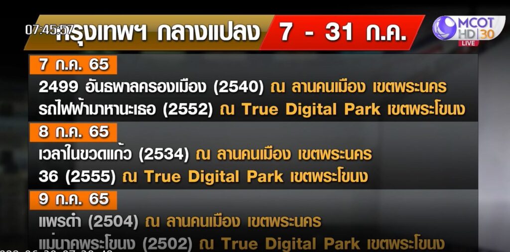 กรุงเทพมหานครเตรียมจัดเทศกาล “กรุงเทพฯ กลางแปลง” เพื่อฟื้นฟูเศรษฐกิจ โดยวันแรกฉายเรื่อง 2499 อันธพาลครองเมือง ณ ลานคนเมือง เขตพระนคร และรถไฟฟ้ามาหานะเธอ ณ True Digital Park เขตพระโขนง ซึ่งเมื่อวานนี้ (29 มิ.ย.) นายชัชชาติ สิทธิพันธุ์ ผู้ว่าฯ กทม. ได้ประชุมร่วมกับภาคีเครือข่าย