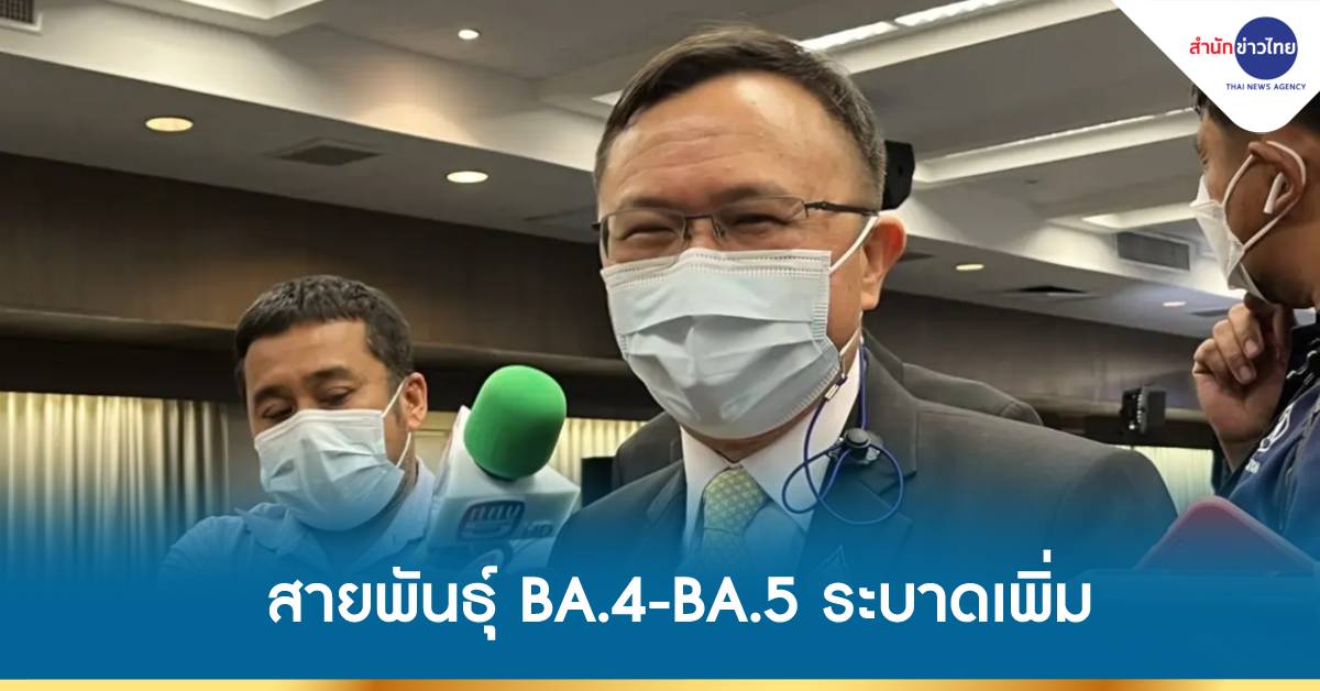 นพ.ศุภกิจ ศิริลักษณ์ อธิบดีกรมวิทยาศาสตร์การแพทย์ เปิดเผยว่าจากการสุ่มตรวจในรอบสัปดาห์ที่ผ่านมา พบว่าคนป่วยในจำนวน 948 คน พบโอไมครอนสายพันธุ์ BA.1 จำนวน 10 ราย, BA.2 จำนวน 447 ราย และ BA.4-BA.5 จำนวน 489 ราย หรือพบสายพันธุ์ BA.4-BA.5 ครึ่งหนึ่งของสายพันธุ์ทั้งหมด หรือเทียบเป็น 2 สัปดาห์ที่แล้ว พบเพียง 6% เพิ่มเป็น 44.3% และเพิ่มเป็น 51.7% ซึ่งจะเห็นว่ามีแนวโน้มเพิ่มขึ้นอย่างชัดเจน อีกไม่นาน BA.4-BA.5 ก็จะครองตลาดการติดเชื้อส่วนใหญ่ พบผู้ติดเชื้อมากที่สุดอยู่ในกรุงเทพฯ เป็นหลัก