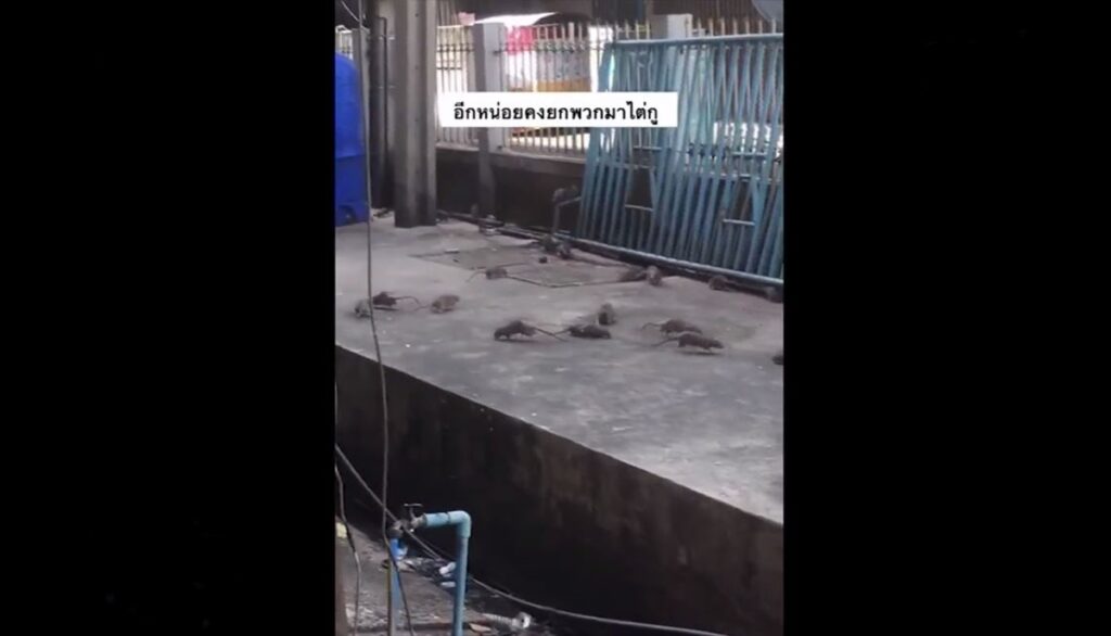 นี่เป็นคลิปภาพจาก TikTok ที่มีคนถ่ายไว้ได้ และชาวเน็ตแห่แชร์จำนวนมาก เป็นคลิปหนูวิ่งเล่นกันยั้วเยี้ยเต็มไปหมดบริเวณริมรั้วที่อยู่ติดถนน