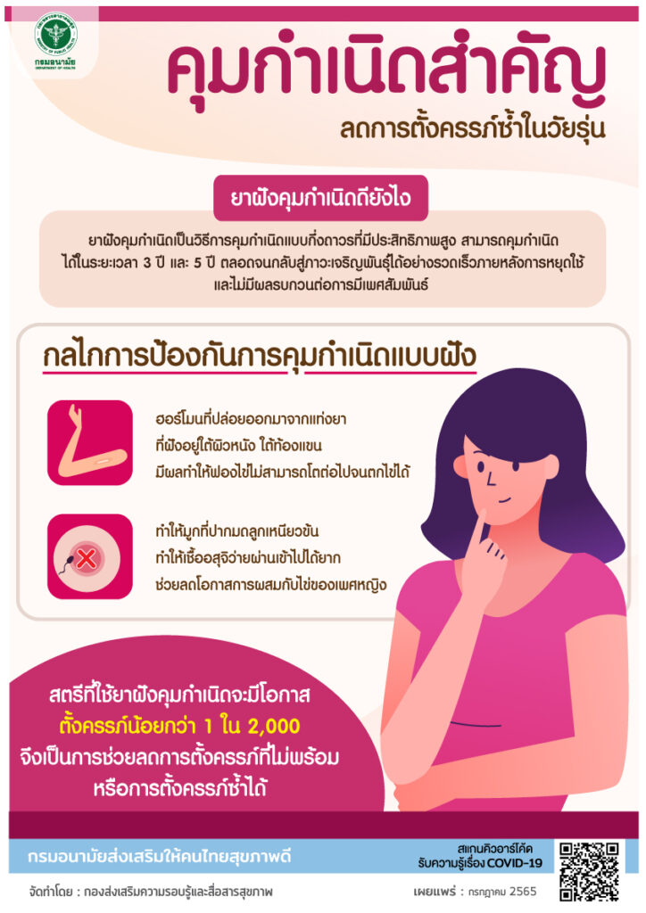 กทม. 10 ก.ค.- กรมอนามัย ย้ำความสำคัญของการคุมกำเนิด แก้ปัญหาการตั้งครรภ์ไม่พร้อม หรือการตั้งครรภ์ซ้ำในวัยรุ่นที่ส่งผลต่อคุณภาพของเด็กไทย พร้อมแนะยาฝังคุมกำเนิด เป็นการคุมกำเนิด แบบกึ่งถาวรที่มีประสิทธิภาพสูง