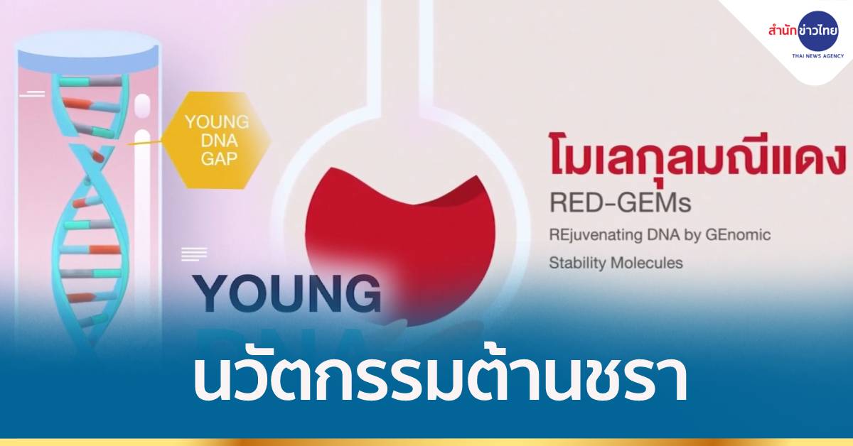 การวิจัยโมเลกุลมณีแดง ซึ่งเป็นนวัตกรรมต้านเซลล์ชรา คืนวัยหนุ่มสาว อันเป็นการค้นพบต้นเหตุของความแก่ครั้งแรกของโลก โดยทีมนักวิจัยของจุฬาฯ วิจัยเรื่องนี้มากว่า 20 ปี พบว่าดีเอ็นเอของมนุษย์จะมีรอยแยกซึ่งทำหน้าที่ปกป้องดีเอ็นเอให้แข็งแรง แต่ว่ารอยแยกดีเอ็นเอจะลดลงเมื่อมนุษย์มีอายุมากขึ้น ส่งผลทำให้ดีเอ็นเอถูกทำลายได้ง่าย และปฏิกิริยาต่อเนื่องในเซลล์จากการที่ดีเอ็นเอถูกทำลาย คือความแก่ชรา รวมทั้งอาจกลายพันธุ์นำไปสู่โรคมะเร็ง ทำให้เกิดโรคไม่ติดต่อเรื้อรังในผู้สูงอายุ เช่น ความดันโลหิตสูง กระดูกผุ สมองเสื่อม ทั้งยังเป็นเหตุให้ร่างกายเสื่อมประสิทธิภาพในการซ่อมแซมตัวเอง มีผลให้แผลของผู้ป่วยเบาหวานหรือแผลไฟไหม้หายยาก