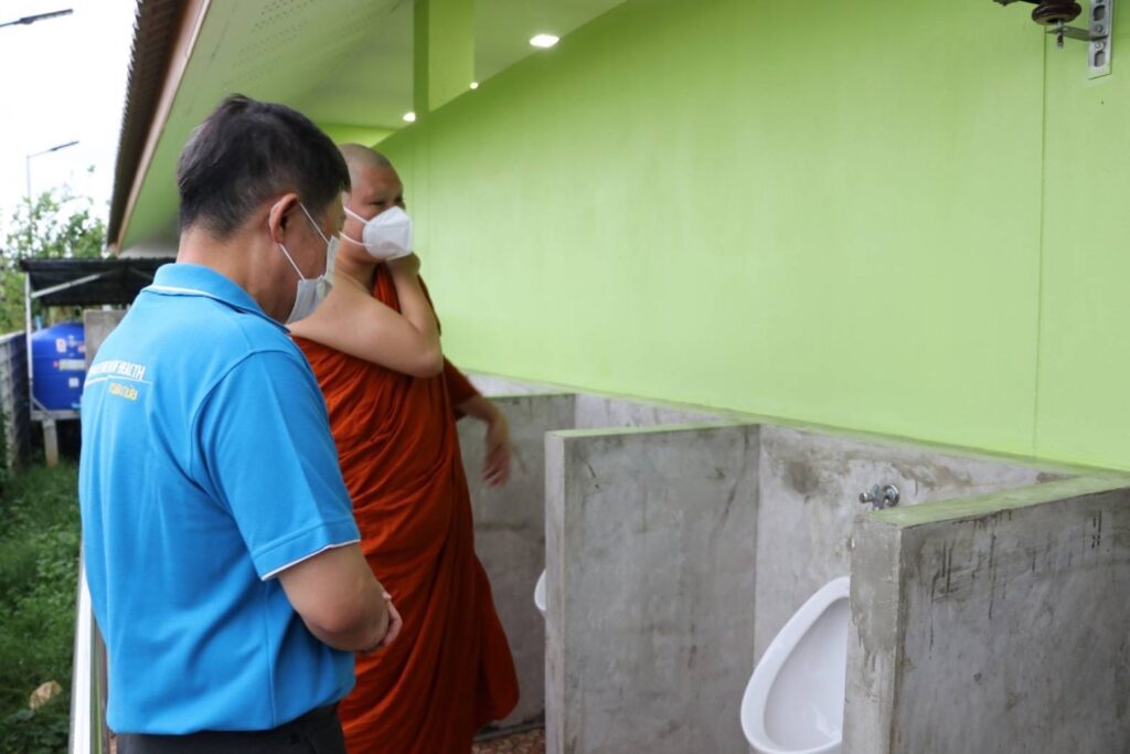 นายแพทย์สุวรรณชัย วัฒนายิ่งเจริญชัย อธิบดีกรมอนามัย กล่าวว่า ช่วงวันหยุดยาว ประชาชนนิยมท่องเที่ยวและไปทำบุญที่วัดและศาสนสถานต่างๆ ขอความร่วมมือให้เจ้าหน้าที่ของวัดและศาสนสถานทุกแห่งร่วมกันล้างส้วมสาธารณะให้สะอาด เพื่อรองรับจำนวนผู้ใช้บริการ โดยเน้นการทำความสะอาดบริเวณผิวสัมผัสร่วม 7 จุดเสี่ยง ได้แก่ สายฉีดชำระที่กดโถส้วม โถปัสสาวะ ลูกบิดหรือกลอนประตู ที่รองนั่งโถส้วม พื้นห้องส้วม และที่เปิดก๊อก เพื่อเป็นการสร้างสุขอนามัยที่ดี และลดความเสี่ยงโรคโควิด-19 ส่วนผู้ใช้บริการต้องช่วยกันรักษาความสะอาด และมีพฤติกรรมในการใช้ส้วมอย่างถูกต้อง โดยปิดฝาโถส้วมก่อนกดชักโครกทุกครั้ง เพื่อป้องกันการฟุ้งกระจายของเชื้อโรค เว้นระยะห่างขณะรอใช้ส้วม 1-2 เมตร ไม่ขึ้นไปเหยียบบนโถส้วมแบบนั่งราบ เช็ดฆ่าเชื้อก่อนนั่งลงบนโถส้วม ไม่ทิ้งวัสดุใดๆ ลงในโถส้วม และล้างมือด้วยสบู่และน้ำให้สะอาดอย่างน้อย 20 วินาที ทุกครั้งหลังใช้ส้วม เป็นการสร้างสุขอนามัยที่ดีให้กับตนเอง ป้องกันการแพร่กระจายเชื้อโรคไปยังส่วนรวมด้วย นอกจากนี้ขอให้ประชาชนเฝ้าระวังและป้องกันตนเอง ตามหลัก UP–DMHTA โดยเน้นย้ำการสวมหน้ากาก เว้นระยะห่าง และล้างมือ เพื่อป้องกันโรค