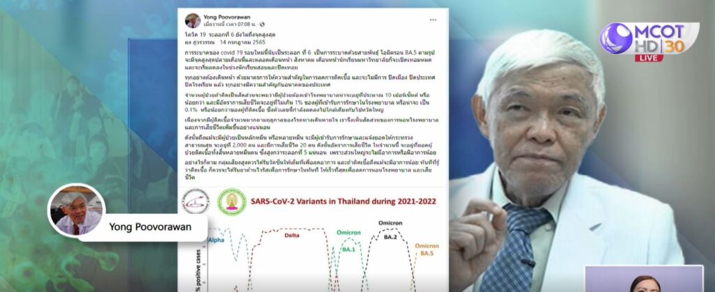 การระบาดของโควิด-19 รอบใหม่นี้ นับเป็นระลอกที่ 6 เป็นการระบาดด้วยสายพันธุ์โอไมครอน BA.5 จะมีจุดสูงสุดปลายเดือนนี้ และตลอดเดือนสิงหาคม เดือนหน้านักเรียน มหาวิทยาลัยจะเปิดเทอมหมด และจะเริ่มลดลงในช่วงนักเรียนสอบและปิดเทอม ทุกอย่างต้องเดินหน้า ด้วยมาตรการให้ความสำคัญในการลดการติดเชื้อ และจะไม่มีการ ปิดเมือง ปิดประเทศ ปิดโรงเรียนแล้ว ทุกอย่างมีความสำคัญกับอนาคตของประเทศ