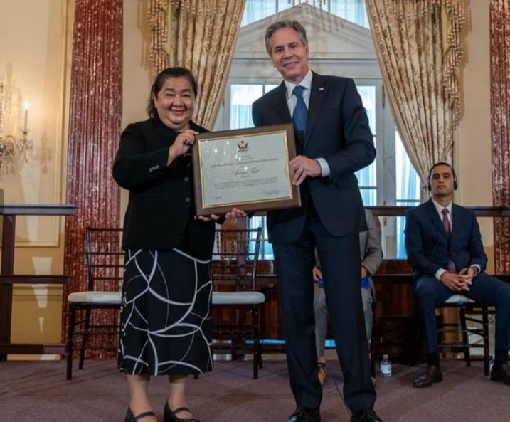 นางพัชรี กล่าวเพิ่มเติมว่า ในปีนี้ สหรัฐอเมริกาได้มอบรางวัล “TIP Report Heroes” หรือ นักสู้ต่อต้านการค้ามนุษย์ ประจำปี 2022 ให้บุคคลที่มีผลงานด้านการต่อต้านการค้ามนุษย์ โดยได้ยกย่องการอุทิศตนเพื่อต่อสู้กับปัญหาการค้ามนุษย์ จำนวน 6 คน จาก 6 ประเทศ มีหญิงไทยที่ได้รับรางวัลดังกล่าว ได้แก่ นางอภิญญา ทาจิตต์ รองผู้อำนวยการศูนย์อภิบาลผู้เดินทางทางทะเล ศูนย์อภิบาลผู้เดินทางทางทะเล (Stella Maris) ซึ่งเป็นองค์กร NGO ในประเทศไทยที่ให้บริการและช่วยเหลือแรงงานในภาคอุตสาหกรรมประมง โดยนางอภิญญา ได้อุทิศตนเพื่อต่อต้านการค้ามนุษย์ในประเทศไทยเป็นระยะเวลากว่า 7 ปี และทำงานอย่างอุตสาหะเพื่อช่วยเหลือแรงงานจำนวนมากที่ถูกแสวงหาผลประโยชน์ ในรูปแบบการบังคับใช้แรงงานในภาคอุตสาหกรรมประมงจากหลากหลายประเทศ เช่น ประเทศไทย อินโดนีเซีย กัมพูชา เมียนมา และบังกลาเทศ นอกจากนี้ ยังมีบทบาทสำคัญในการสร้างความตระหนักรู้เกี่ยวกับการค้ามนุษย์ในเด็ก โดยได้เดินทางไปยังโรงเรียนต่างๆ ในประเทศไทยเพื่อสอนให้ความรู้แก่เด็กมากกว่า 10,000 คนต่อปี. -สำนักข่าวไทย